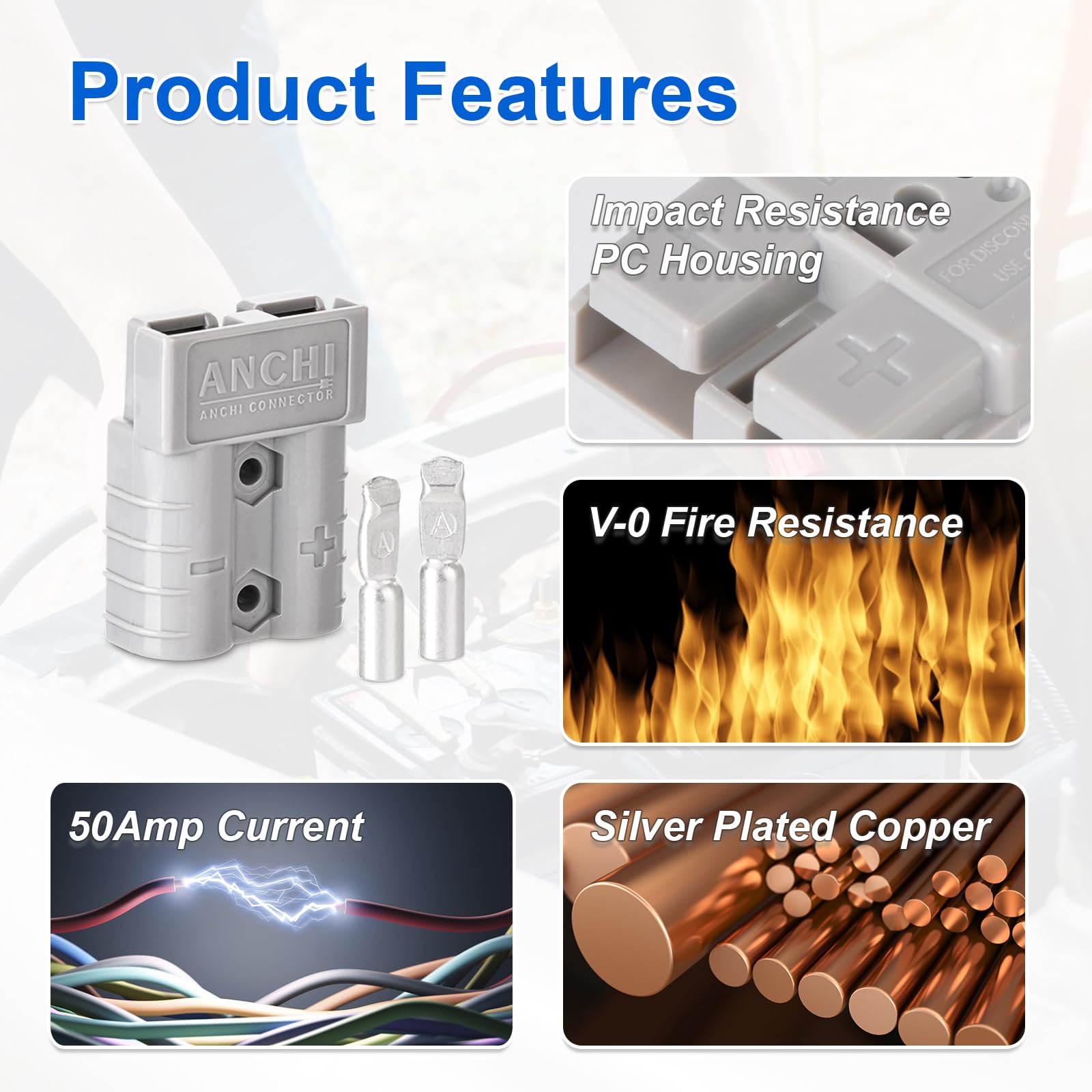 4 Stück Anderson Stecker 50A 600V - Schnellverbindungsstecker Für Batterien