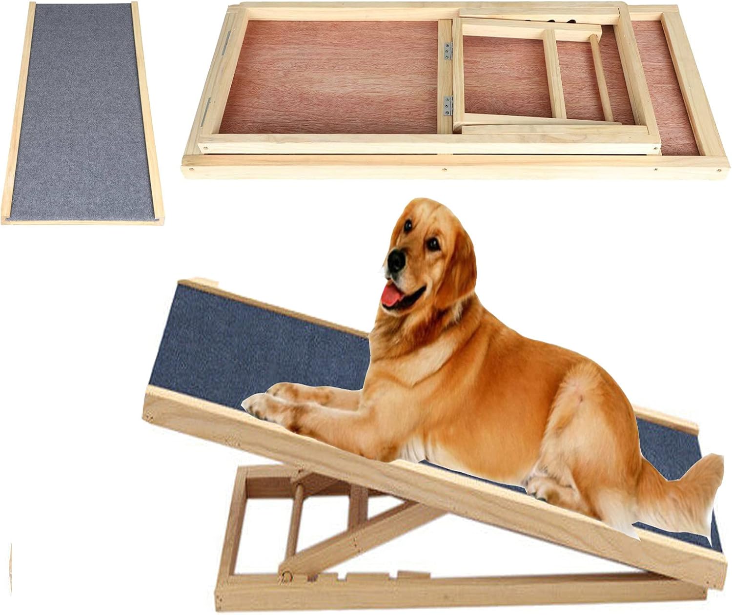 Oh, diese faltbare Hunderampe ist ja mal total praktisch für deinen Vierbeiner! Aus Holz und Stoff - stabil und sicher. Rutschfeste Oberfläche - dein Hund kommt sicher hoch und runter. Faltbar auf 30x30x35cm - super platzsparend. Perfekt für Sofa, Bett oder Auto-Einstieg. Besonders für ältere oder verletzte Hunde ideal - schont die Gelenke. Einfach aufstellen und dein Hund kann selbstständig rauf und runter. Macht das Leben für Mensch und Tier einfacher. Einfach ein tolles Geschenk für jeden Hundebesitzer!