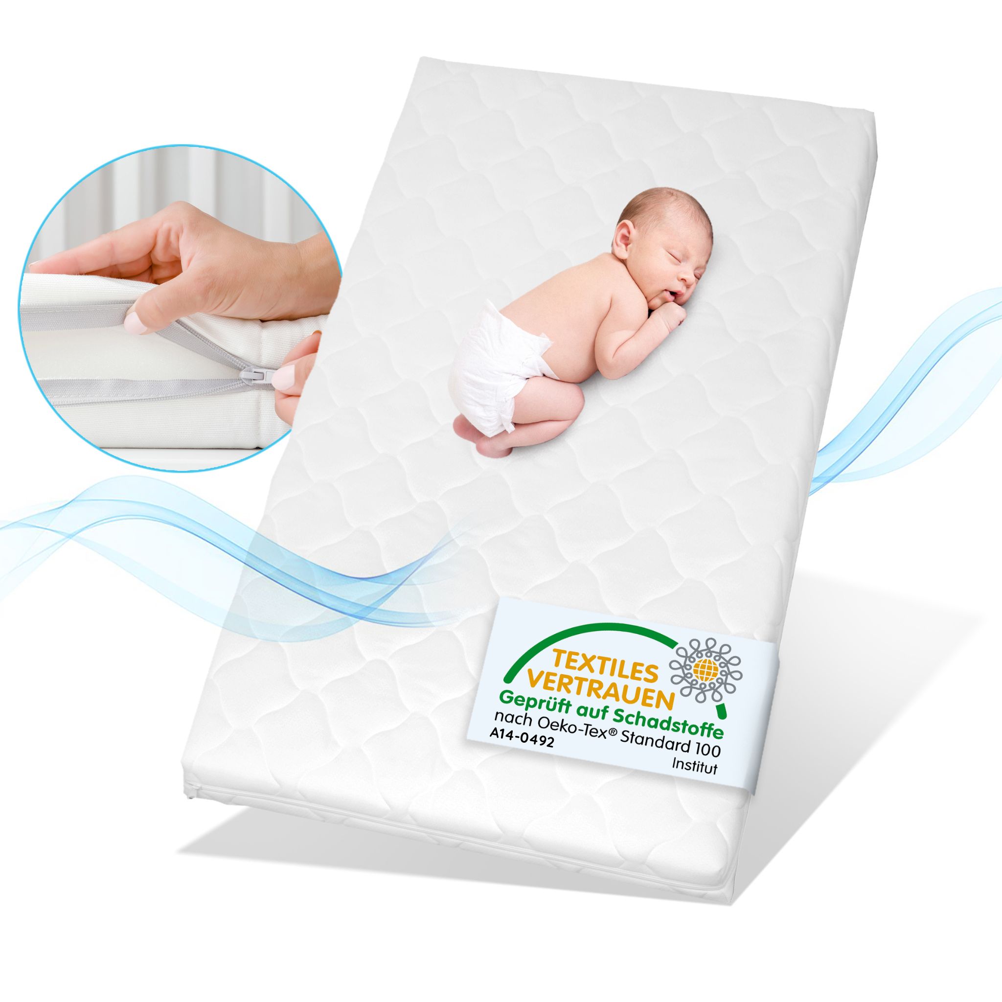Perfekter Schlafkomfort für dein Kind! Die Arensberger Stella Matratze in 70x140cm mit trittfester Kante und abnehmbarem Bezug. Aus Kaltschaum und Komfortschaum für optimale Druckentlastung. Wendbar für längere Lebensdauer, mit Reißverschluss für einfache Reinigung. Wird vakuumverpackt und platzsparend geliefert. H1 Qualität für gesunden Schlaf. Dein Kind verdient den besten Schlaf!