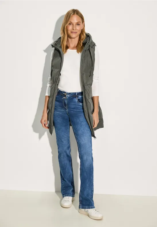 Cecil Damen Lange Steppweste - Mit Kapuze Und Taschen, ärmellos
