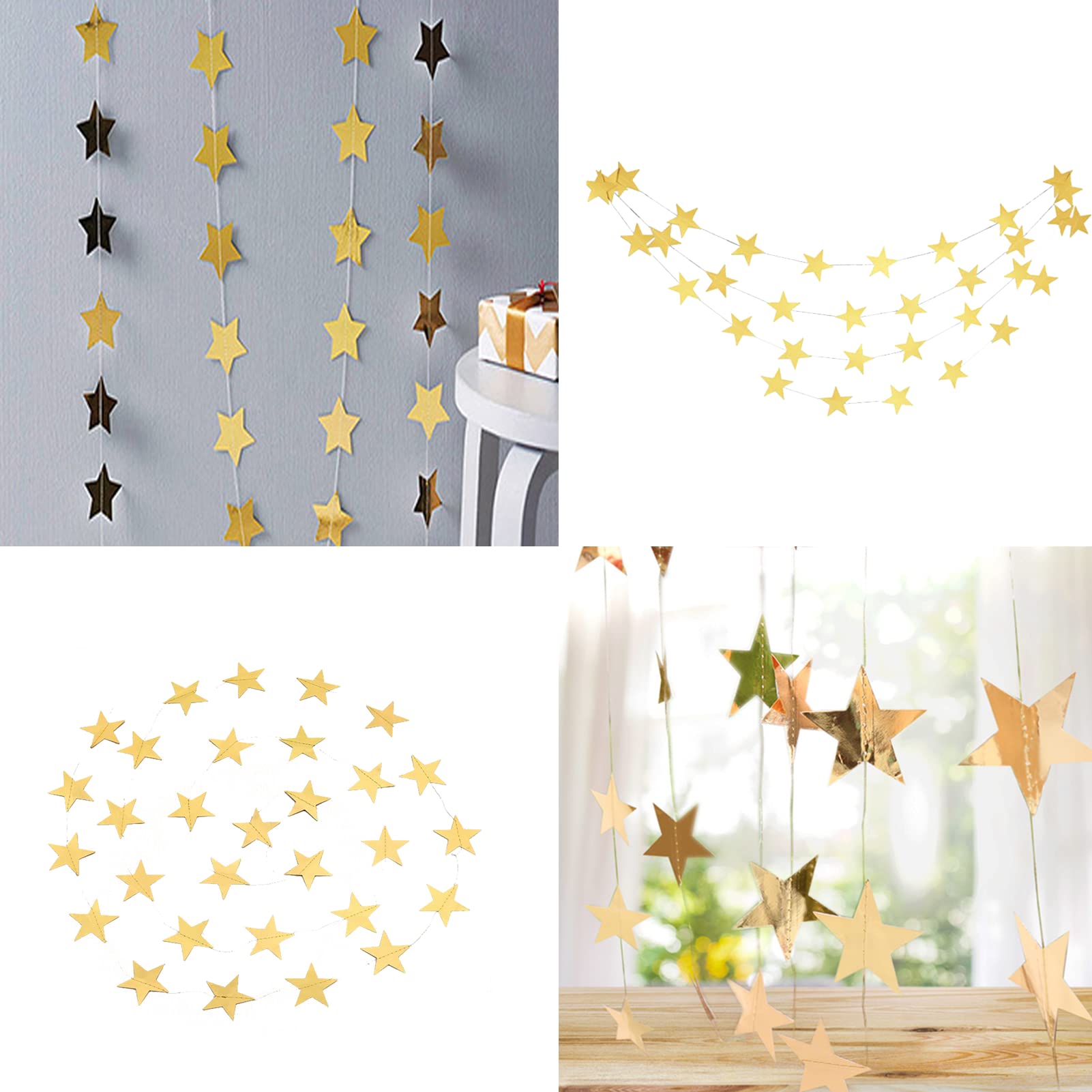 Party-Stimmung garantiert! Diese wunderschöne Gold-Girlande verwandelt jeden Raum in eine festliche Location. Mit stolzen 16 Metern Länge - genug für große Räume oder mehrere Zimmer! Aus hochwertigem Papier mit reflektierender Oberfläche - glänzt wunderschön im Licht! Schon montiert - einfach auseinanderziehen und aufhängen, kein Basteln nötig! Mit Sternen und Kreisen im modernen Design - sieht stylisch und edel aus! Perfekt für Geburtstage, Hochzeiten, Silvester oder jede andere Feier! Schafft sofort eine festliche Atmosphäre ohne großen Aufwand! In 4 einzelnen Girlanden à 4 Meter - flexibel einsetzbar! Super Preis-Leistungs-Verhältnis - viel Deko für wenig Geld! Einfach an Wänden, über Tischen oder an der Decke befestigen! Macht jede Party zu einem unvergesslichen Erlebnis! Einfach bestellen und sofort dekorieren - die Party kann beginnen!