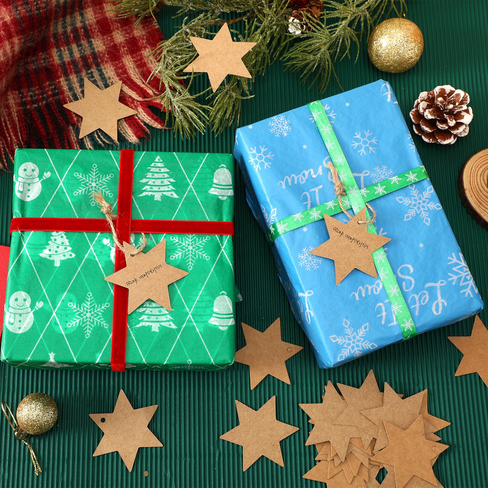 150 Weihnachts Geschenkanhänger - Stern Tags Mit 20m Schnur Kraftpapier