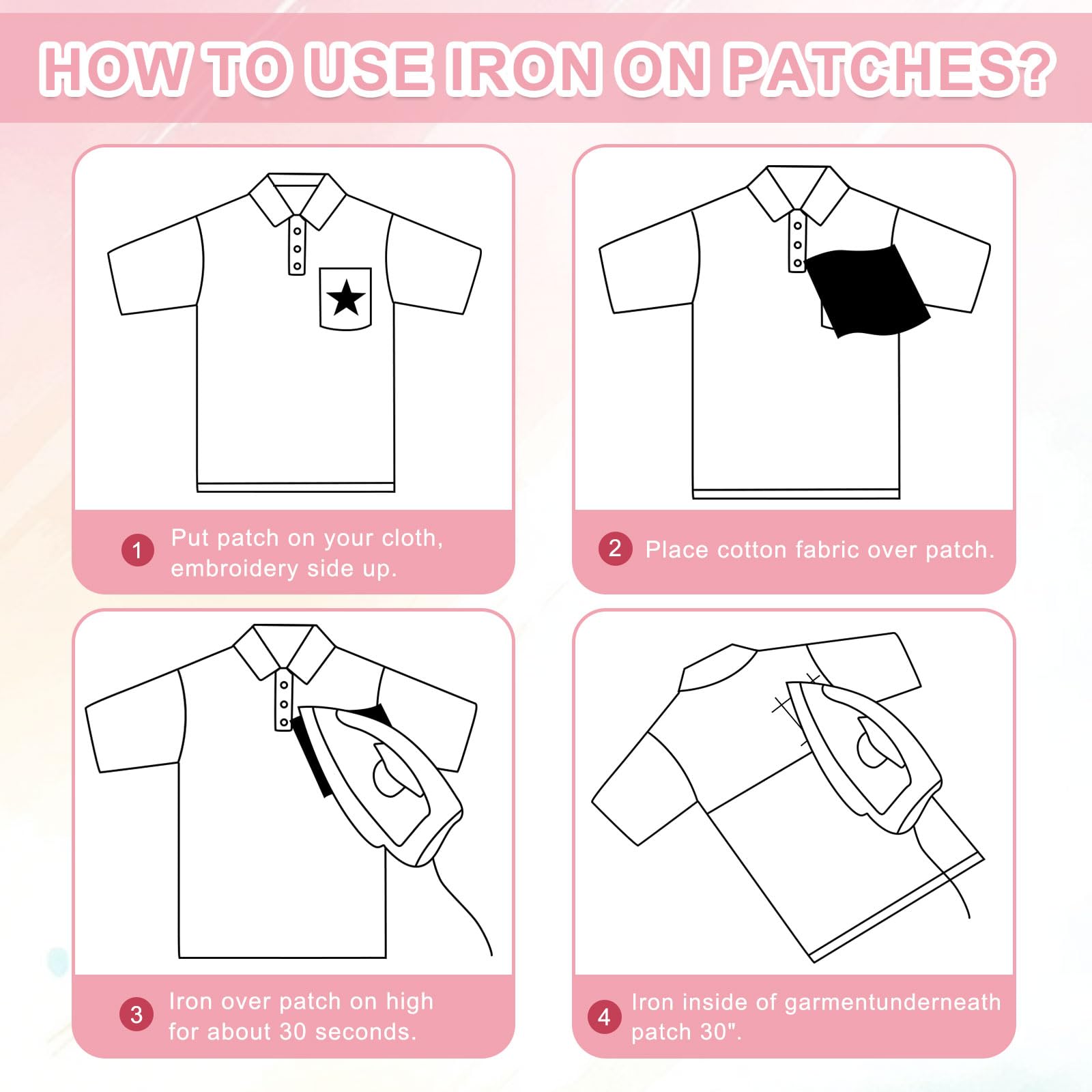 Anwendung? Ganz easy: Patch positionieren, Baumwolltuch drüber und bei 150-290°C ca. 56 Sekunden bügeln. Die integrierte Klebeschicht hält super - aber wenn du willst, kannst du sie auch zusätzlich annähen für extra Halt.