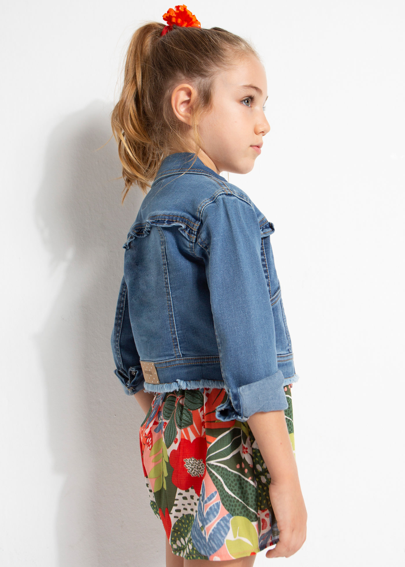 Jeansjacke Mädchen Mit Sternstickerei - Langarm Denim Jacke Y2K Style | Mit Knöpfen