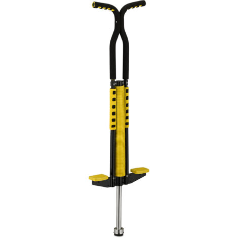 Hüpf dich glücklich! Dieser coole Pogo Stick von Relaxdays bringt Action und Spaß an die frische Luft. Speziell für Kinder bis 60kg entwickelt, ist der Springstab mit 103cm Höhe der perfekte Begleiter für den Garten oder Park. Die gepolsterten Griffstangen und rutschfesten Pedale sorgen für sicheren Halt beim Springen. Die robuste Edelstahl-Konstruktion mit wartungsfreier Feder hält auch wilderen Hüpfern stand. Der belastbare Gummifuß schont den Boden und dämpft die Landung. Ob kleine Hüpfer oder große Sprünge - hier ist für jedes Können etwas dabei! Wichtig: Immer mit Schutzausrüstung (Helm, Knie- und Ellbogenschoner) verwenden und nur unter Aufsicht von Erwachsenen. Ein fantastisches Funsport-Gerät, das Kinder an die frische Luft lockt und für Bewegung sorgt. Perfekt für Geburtstage, als Geschenk oder einfach für den nächsten Familienspaß im Garten!