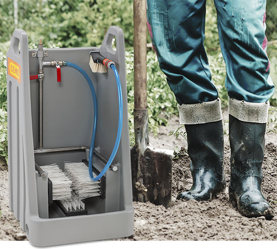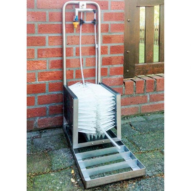 Saubere Stiefel, gesunde Tiere! Dieser robuste Stiefelreiniger aus Edelstahl ist perfekt für Stall und Hof. Mit 5 verschiedenen Bürsten und praktischem Abklopfrost wird jeder Schmutz entfernt. Der 1/2\ Wasseranschluss macht die Reinigung super einfach. Rutsch- und trittsicher für sichere Handhabung. Durch Zudosierung von Reinigungsmitteln wird die Einschleppung von Krankheitserregern in die Ställe verhindert. Mit 80x26x52cm Maßen kompakt aber effektiv. Wird zerlegt im Karton geliefert - inklusive Montageanleitung für einfachen Aufbau. Ein wichtiges Tool für jeden Landwirt oder Pferdehalter der Wert auf Hygiene und Tiergesundheit legt!