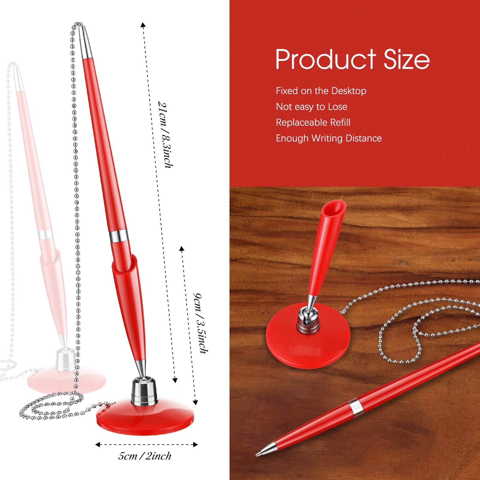 Einfache Montage: Halter auf glatte, saubere Oberfläche kleben - fertig! Die Kettenlänge ist perfekt bemessen, um bequem schreiben zu können ohne Einschränkungen.