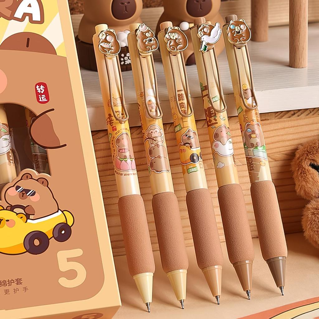 Capybara Stifte Set - 12 Kugelschreiber + 12 Bleistifte + Sticker