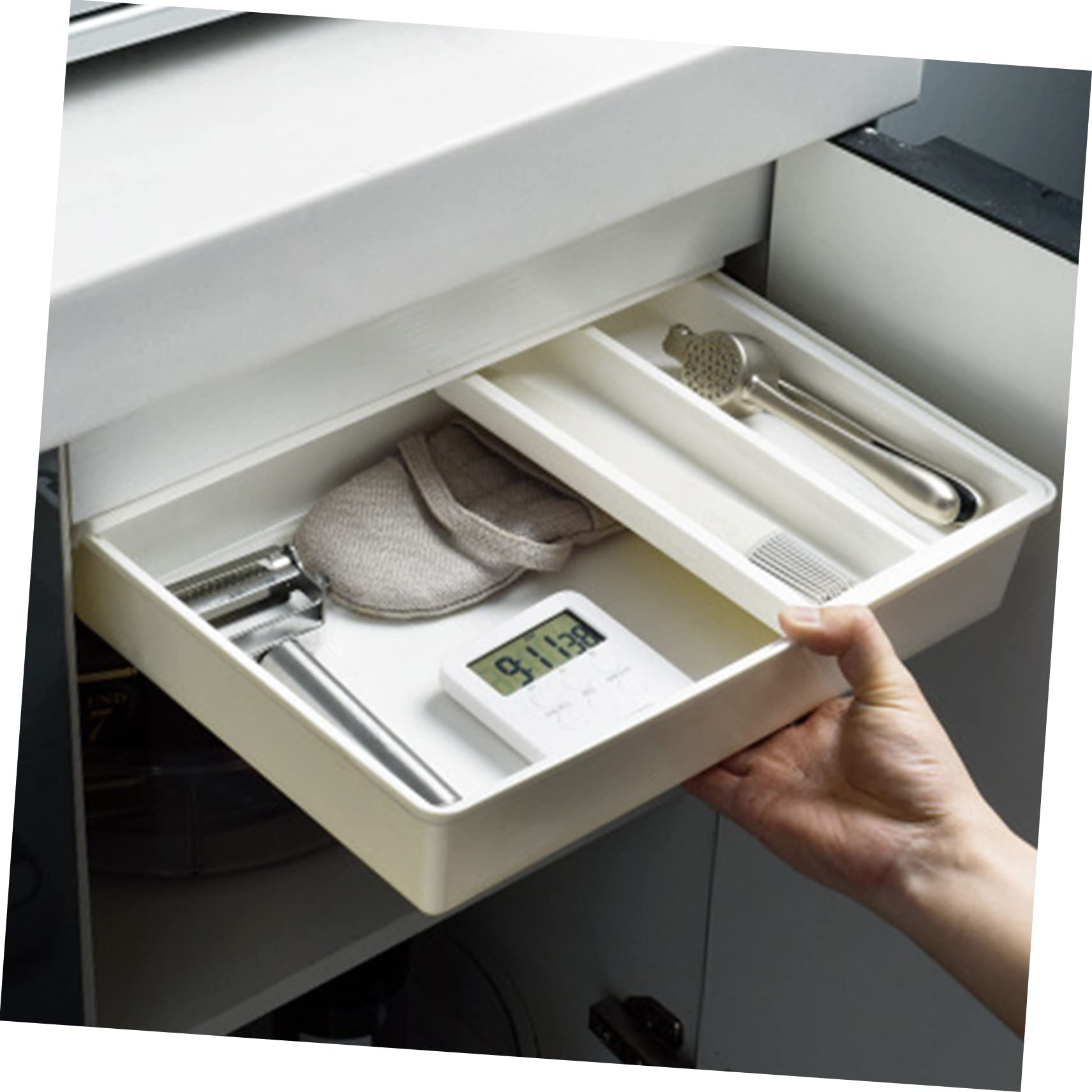 Schluss mit unordentlichen Schreibtischen! Dieser geniale Untertisch-Organizer schafft Platz und Ordnung in deinem Arbeitsbereich. Mit den Maßen 22x9x3,5cm ist er kompakt aber geräumig genug für Stifte, Kulis, Scheren und andere Kleinigkeiten. Einfach unter den Schreibtisch kleben - die selbstklebende Rückseite hält sicher auf den meisten Oberflächen. Das schlichte weiße Design fügt sich unauffällig in jeden Raum ein. Das schubladenartige Design macht den Zugriff super einfach - einfach aufziehen und du hast alles griffbereit. Perfekt für Büro, Home-Office, Kinderzimmer oder Hobbyraum. Endlich keine herumrollenden Stifte mehr! Spart Platz auf der Tischoberfläche und sieht dabei noch stylisch aus. Einfach befestigen und sofort mehr Ordnung genießen!
