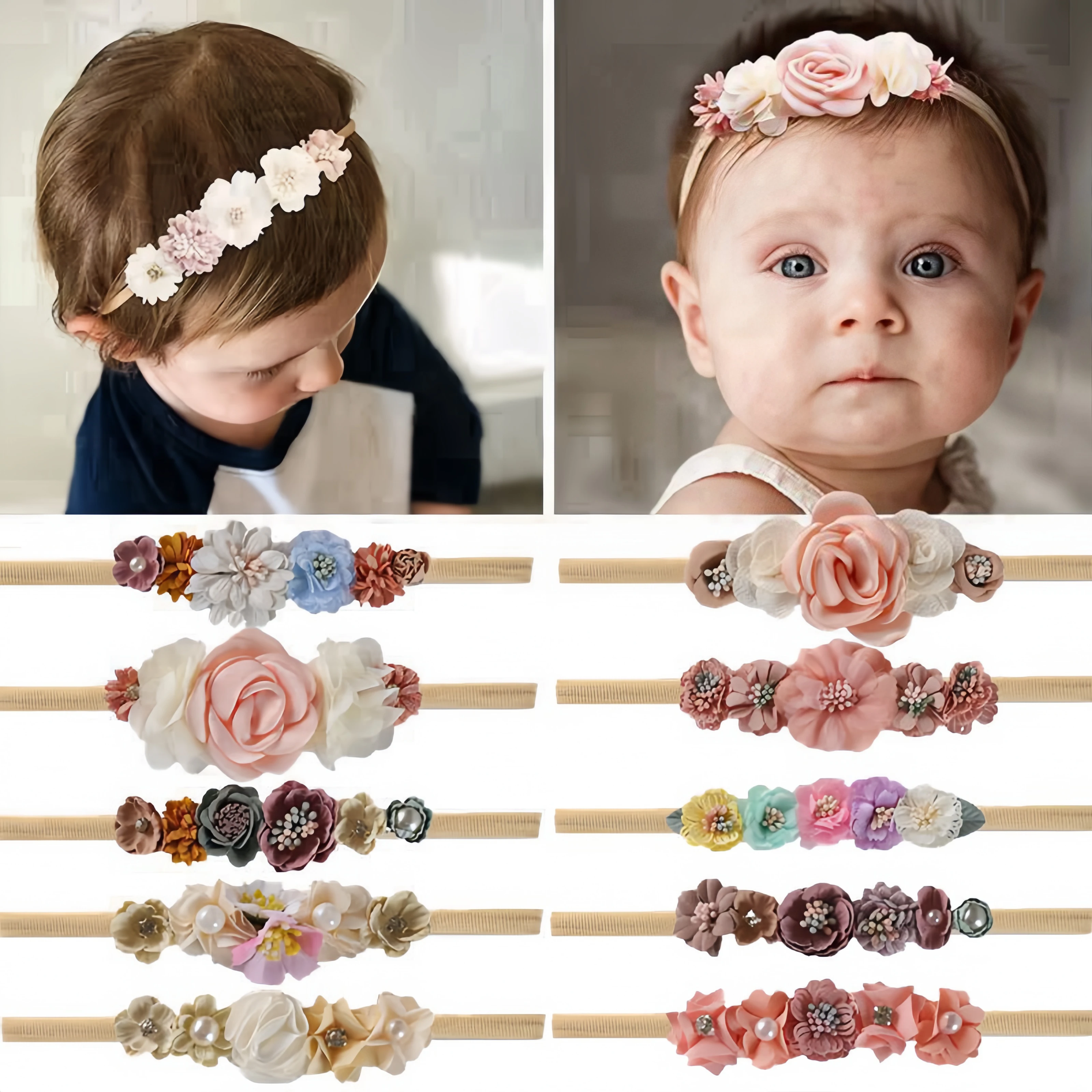 KooingTech Baby Stirnband Mit Bären Design - Weiches Elastisches Haarband Für Mädchen 0-3 Jahre