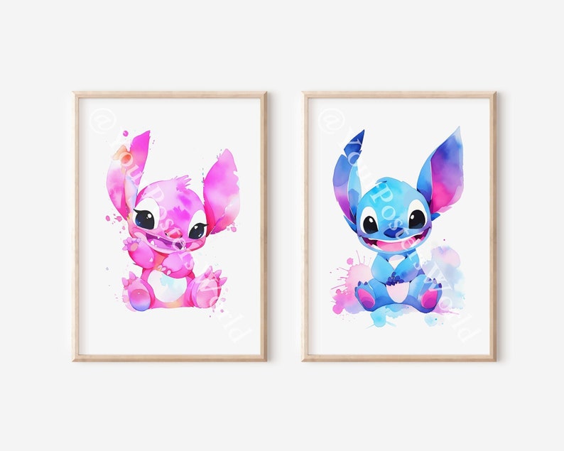 Oh wie süß! Dieses 6-teilige Stitch Poster Set bringt sofort gute Laune ins Zimmer. Die niedlichen Aquarell-Motive zeigen Stitch und Angel in verschiedenen lustigen Posen - ein absolutes Muss für alle Disney-Fans! Mit 20x25cm Größe passen die Poster perfekt an jede Wand, ob im Kinderzimmer, Wohnzimmer oder sogar im Bad. Gedruckt auf hochwertigem, dickem Papier mit brillanten Farben, die lange halten ohne zu verblassen. Da sie ungerahmt geliefert werden, kannst du sie ganz nach deinem Geschmack kombinieren - ob als Collage, einzeln oder schick eingerahmt. Die Motive im Cartoon-Pop-Art-Stil sind verspielt aber nicht zu kindisch, gefallen also auch noch Teenagern. Einfach aufhängen und sich an den fröhlichen Farben erfreuen! Super als Geschenk für Geburtstage, Weihnachten oder einfach so. Auch fürs Babyzimmer eine wunderbare Deko-Idee. Mach deine Wände bunt und lass Stitch für magische Momente sorgen!