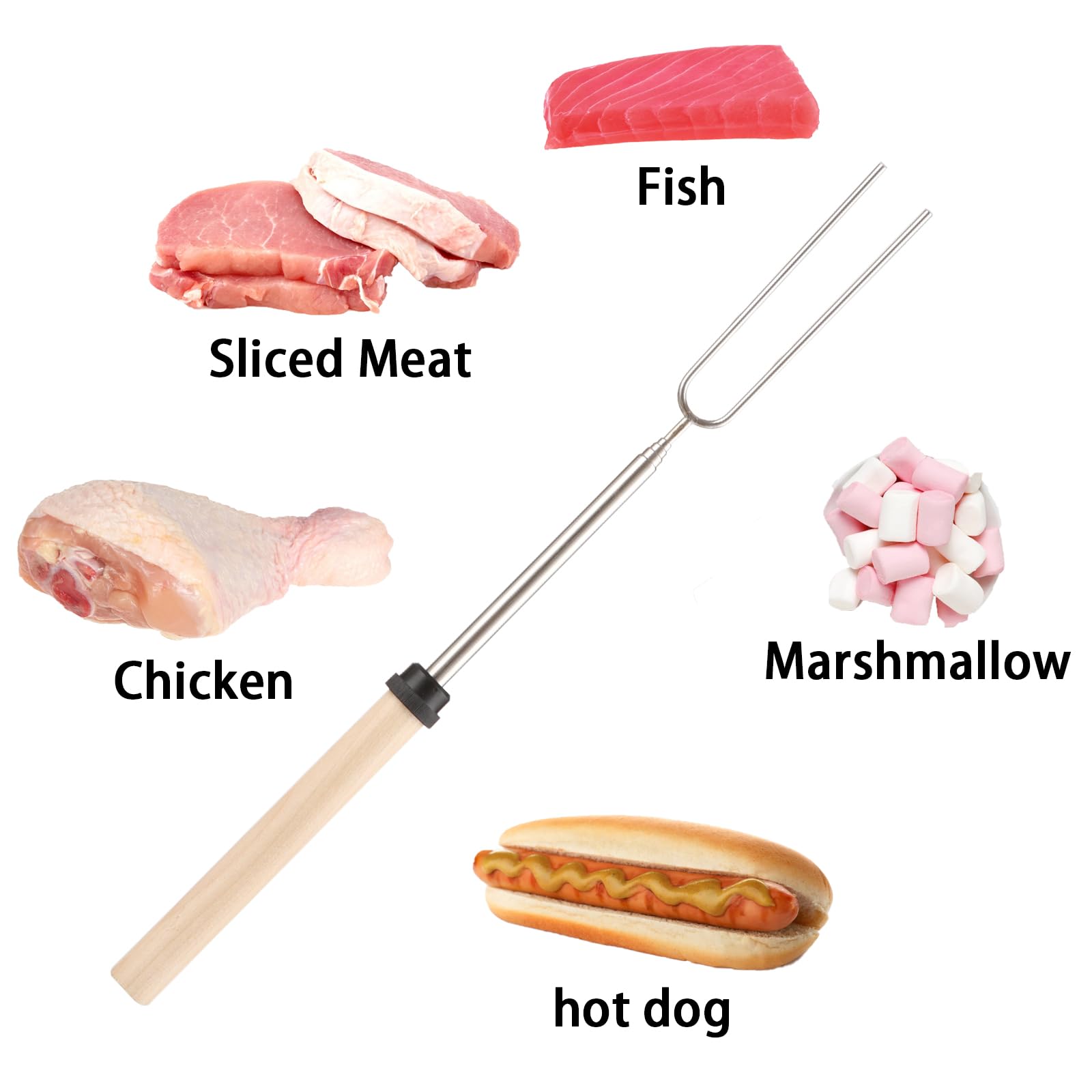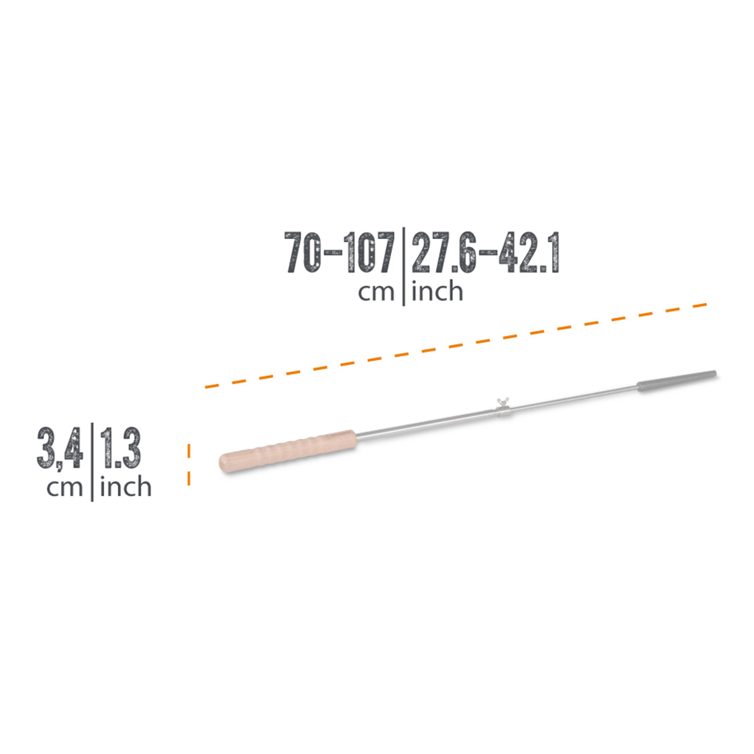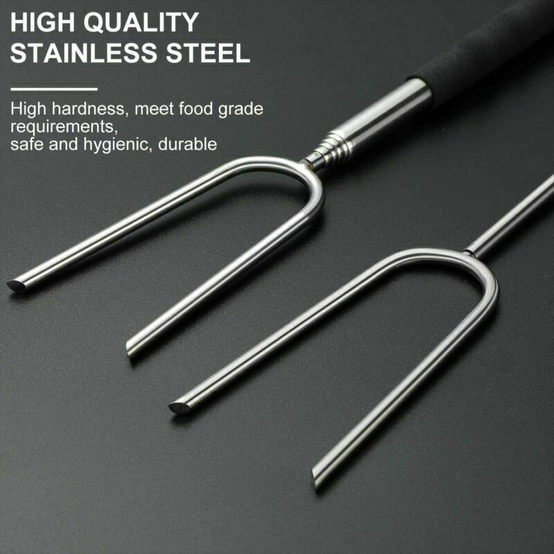 Perfekt für Lagerfeuerromantik und Grillabende! Diese 8 Edelstahl-Spieße sind deine idealen Begleiter für Stockbrot, Marshmallows und Grillspieße. Von 31cm auf 81cm ausziehbar, passen sie sich jeder Situation an - ob am knisternden Lagerfeuer oder auf der heimischen Terrasse. Mit Holzgriff für sicheren Halt und der zweizinkigen Gabel oben, die das Essen sicher hält. Rostfrei, ungiftig und super langlebig. Einfach zusammenschieben für platzsparende Aufbewahrung im Rucksack. Ideal für Camping, Gartenpartys, Angeltouren oder den nächsten Familienausflug. Endlich müssen keine Äste mehr gesucht werden - einfach Spieß ausziehen, Teig oder Marshmallow drauf und über die Glut halten. Grillvergnügen pur!