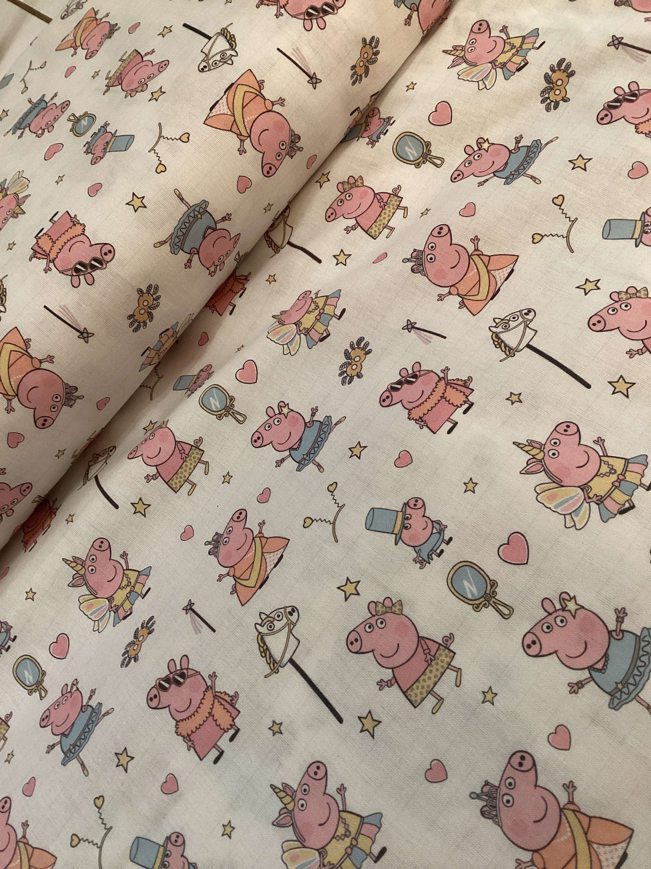 Doppelmoppel Peppa Wutz Stoff | 100% Baumwolle 140cm Breit | Lizenzstoff Für Nähanfänger