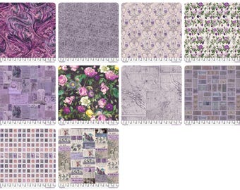 Wow, diese Tim Holtz Stoffe sind ja der Hammer! 10 verschiedene Designs in wunderschönen Lila-Tönen - perfekt für alle Näh- und Bastelprojekte. Jedes Stück ein Unikat!
