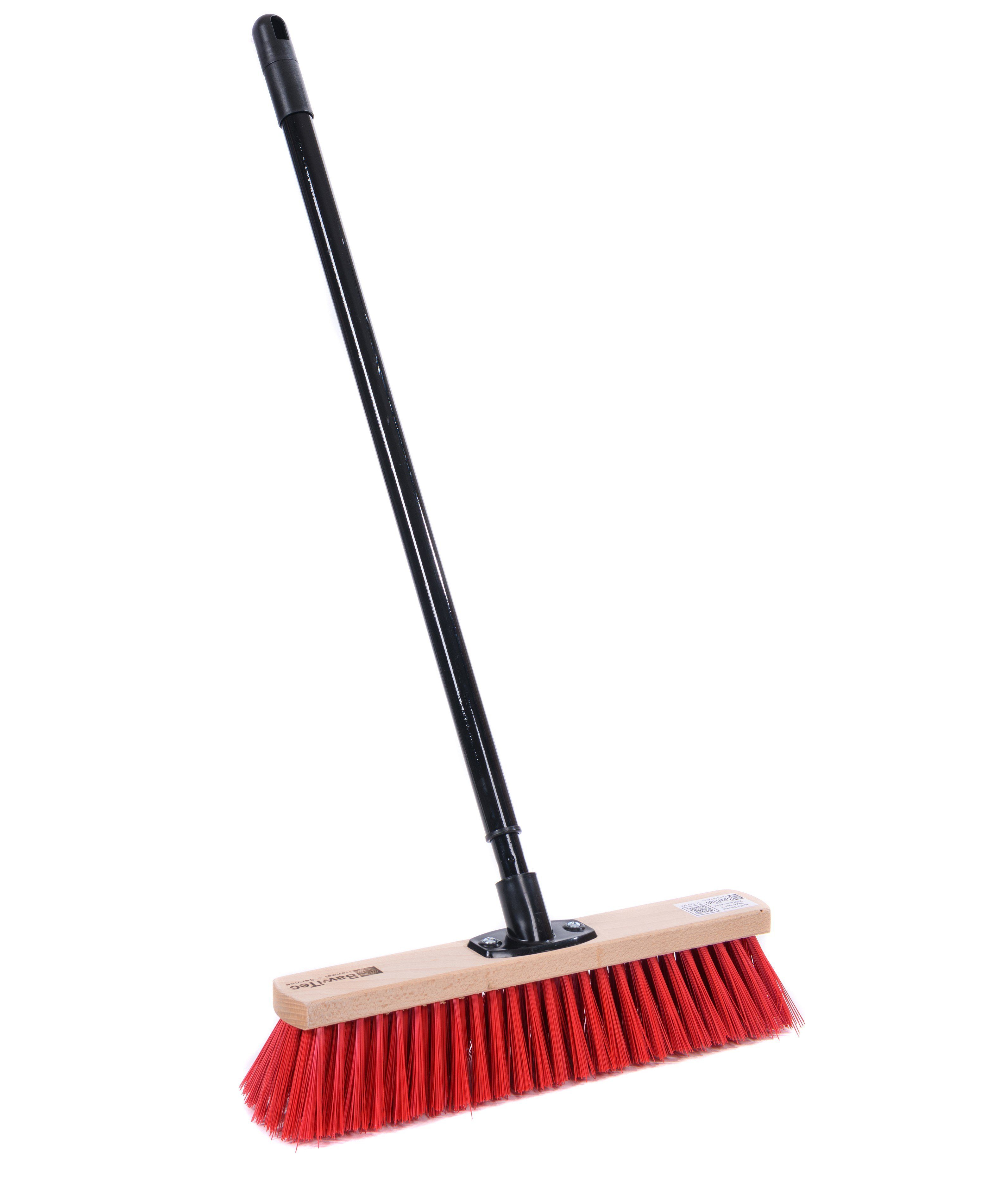 Der perfekte Besen für Hof, Garage und Garten! Mit 80cm breitem PVC-Besenkopf und 150cm Buchenholz-Stiel. Der eloxierte Metallstielhalter sorgt für stabilen Halt, die Metall-Kratzleiste entfernt hartnäckigen Schmutz. Der kräftige Elaston-Behang kehrt auch groben Dreck zuverlässig zusammen. Hergestellt in der EU - Qualität die überzeugt. Die Lieferung erfolgt komplett mit Stiel, sofort einsatzbereit. Farbe wird zufällig ausgewählt (rot/grün/limone/blau). Ein robuster Alltagshelfer der lange hält. Einfach zusammenstecken und loskehren - sauber gemacht!
