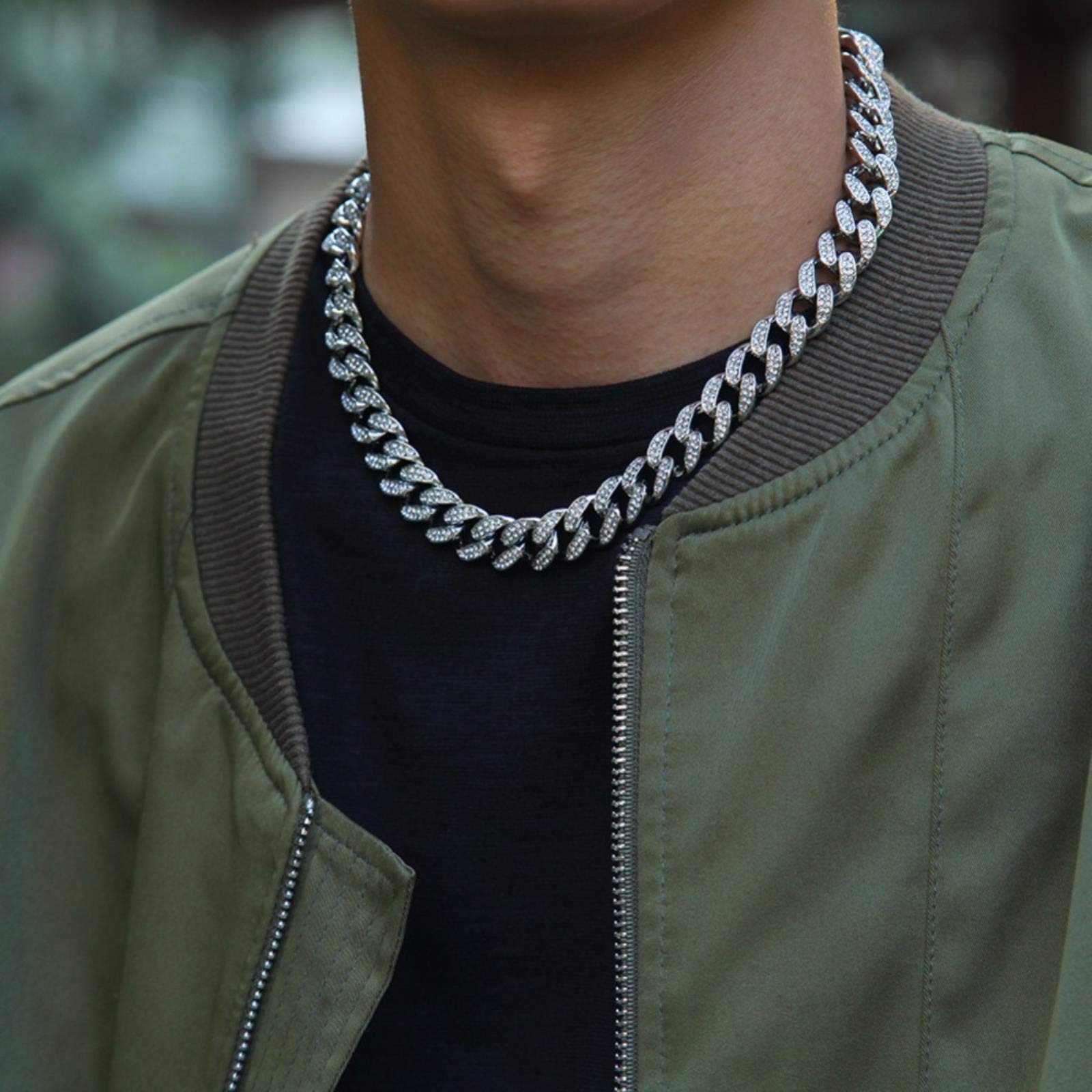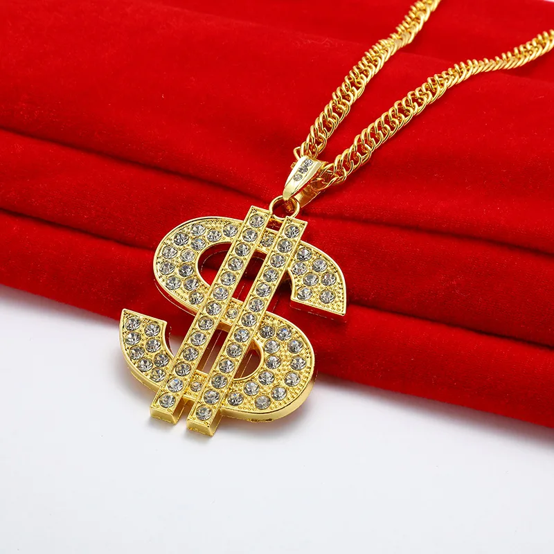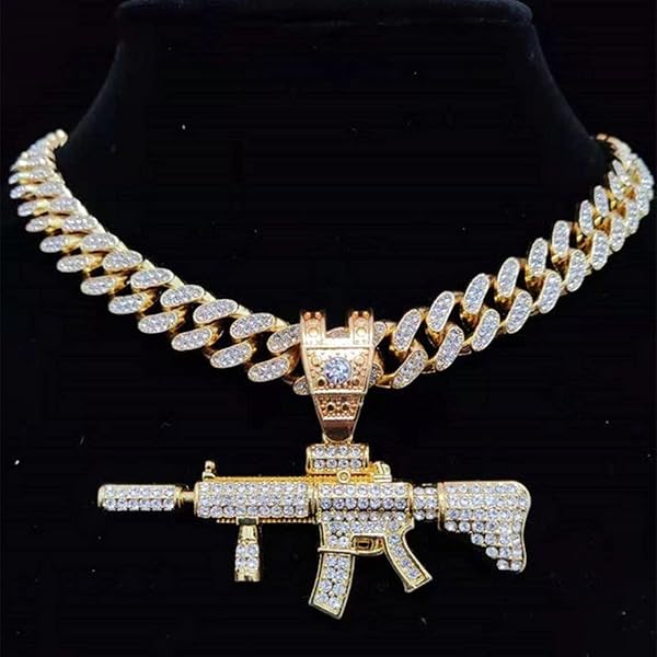 Abgefahrene Hip-Hop Halskette mit coolem Geld-Anhänger! Der Anhänger ist mit funkelnden CZ-Steinen besetzt und sieht einfach mega aus. Mit 20 Zoll Länge (ca. 50cm) liegt die Kette perfekt am Hals. Das kubanische Ketten-Design ist typisch für echten Rapper-Style. Aus hochwertigem Material gefertigt - nicht zu schwer (115g), aber trotzdem wertig. Perfekt für Partys, Konzerte oder einfach als Statement im Alltag. Ob zu Jeans und T-Shirt oder zum schicken Outfit - diese Kette macht immer was her. Ein echtes Must-Have für alle, die urbanen Schmuck lieben!