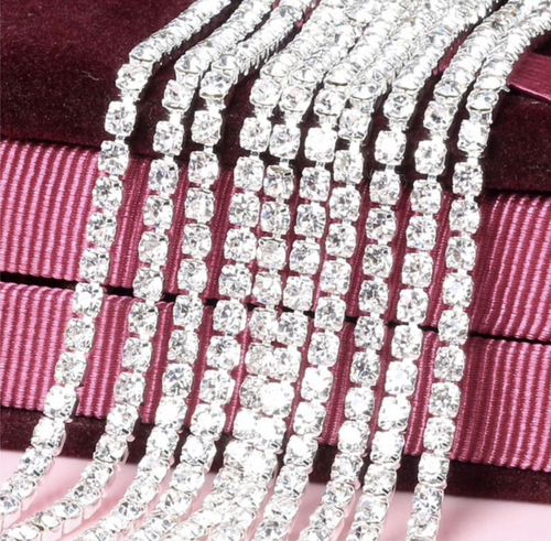 Kreiere deinen eigenen einzigartigen Schmuck! Diese 2 Meter lange Strasskette in Rosa ist perfekt für alle Bastelprojekte. Die facettierten Kristall-Perlen glitzern wunderschön und sind auf einer Messingkette aufgereiht. Einfach mit einer Zange die gewünschte Länge abschneiden und mit Verschluss und Sprungringen zu Armband, Halskette oder Bauchkette machen. Die Kette kommt auf praktischen Spulen - kein lästiges Entwirren und super einfach zu lagern. Das versilberte Messing ist rostfrei und langlebig. Ob für layered Look, besondere Anlässe oder einfach nur als Alltagsschmuck - deiner Kreativität sind keine Grenzen gesetzt. Perfekt für Schmuckbastler, DIY-Fans oder alle, die individuelle Accessoires lieben. Mach deine Kreationen unverwechselbar mit diesem glitzernden Band!