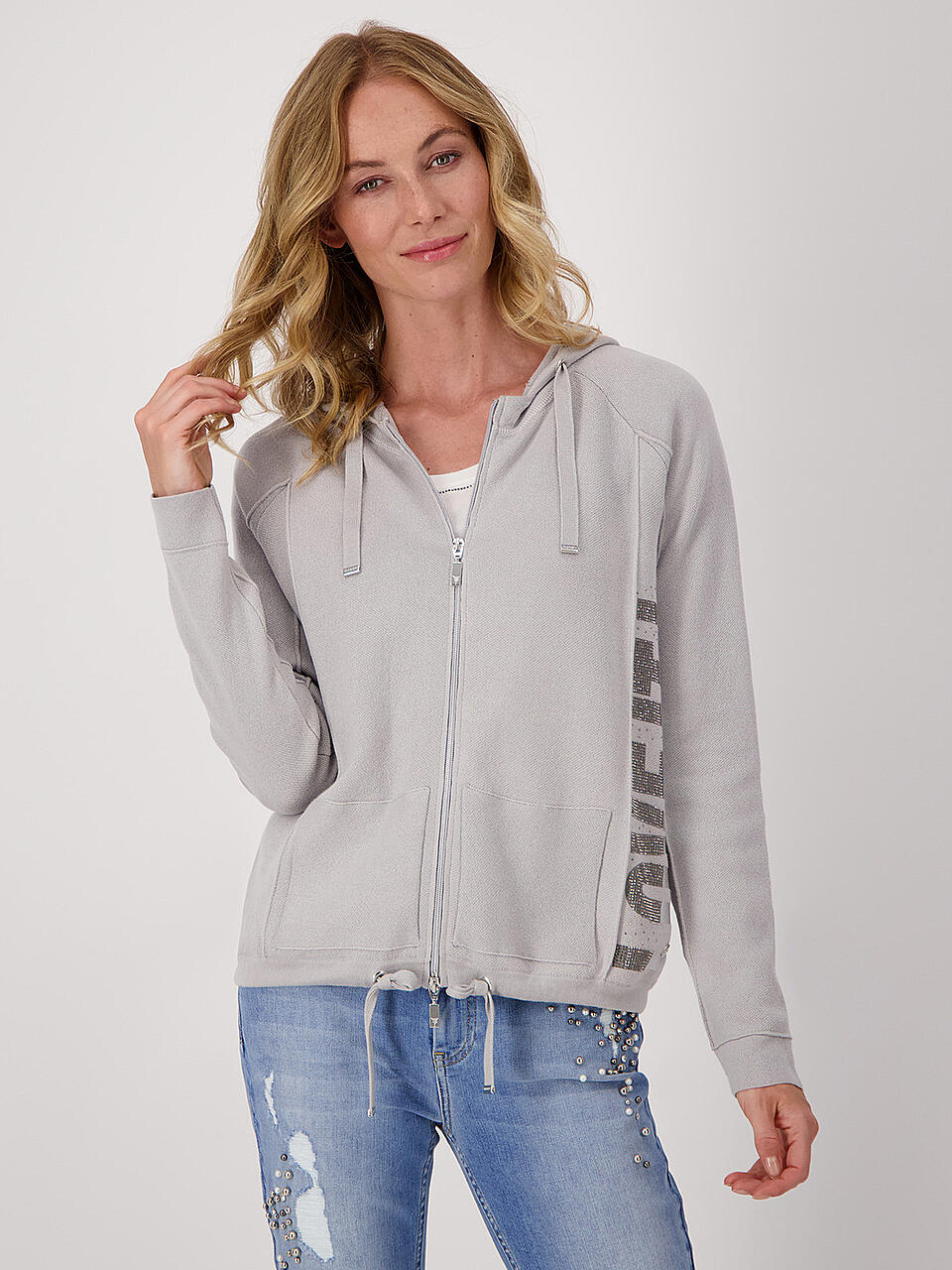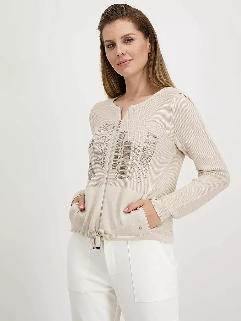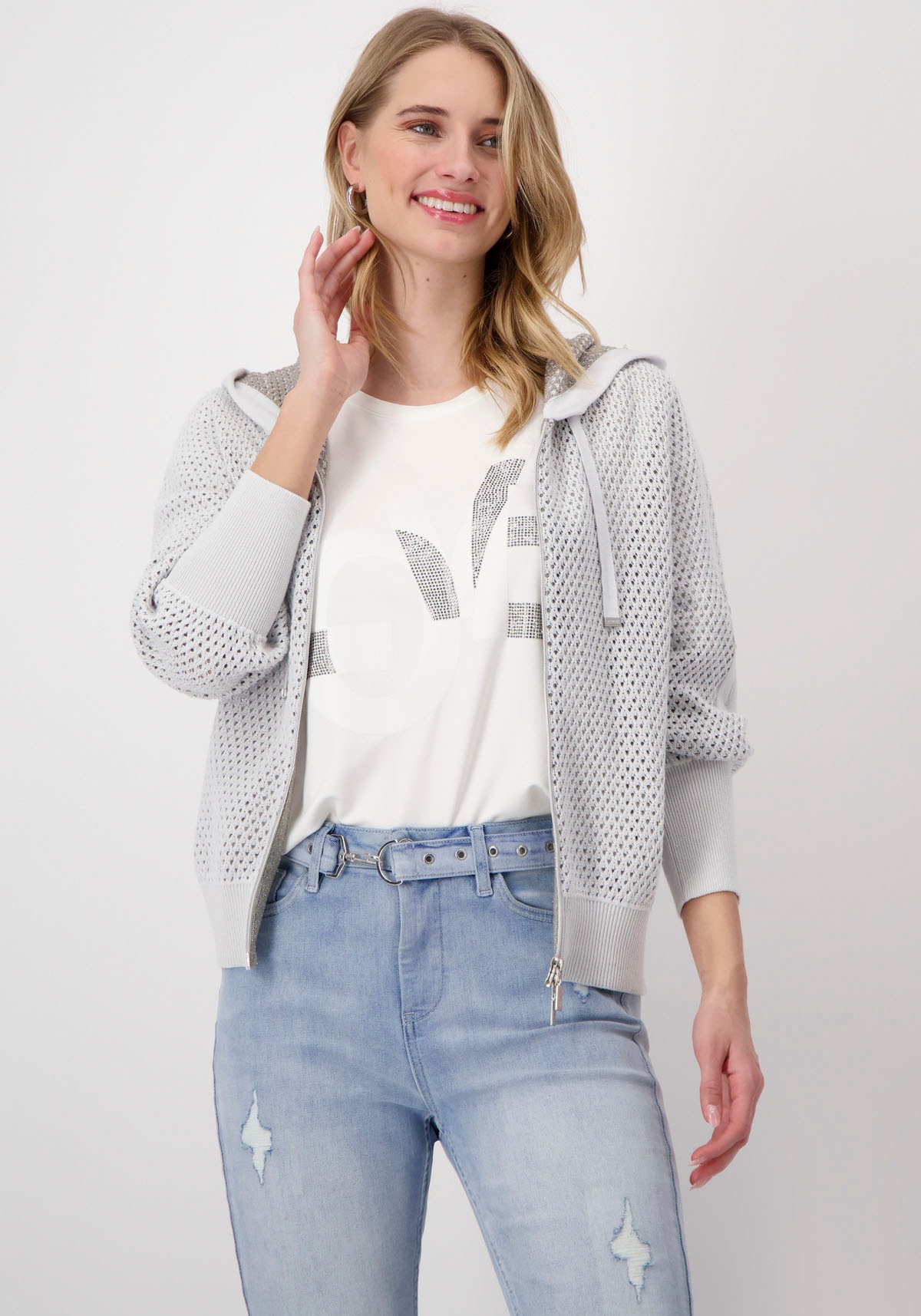 MONARI Strickjacke Mit Leopardenmuster & Strasssteinen - Viskose Blend Mit 2-Wege-Reißverschluss