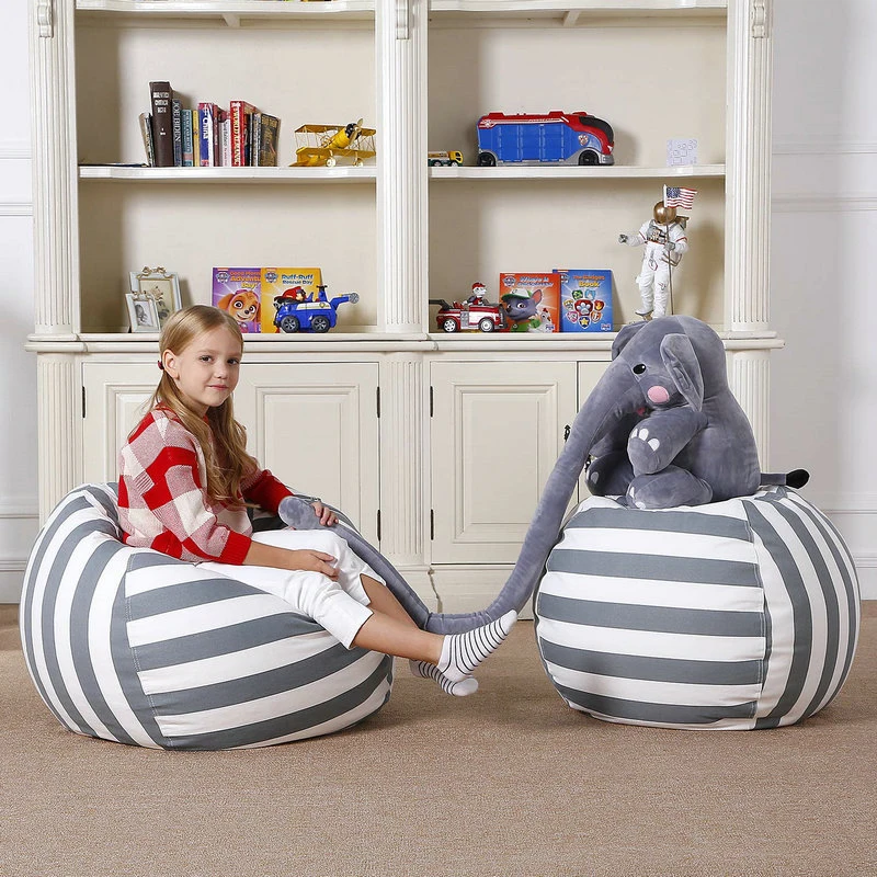 THEE Spielzeug Aufbewahrungstasche Streifen Sitzsack - 2-in-1 Lagerung & Sitzmöglichkeit
