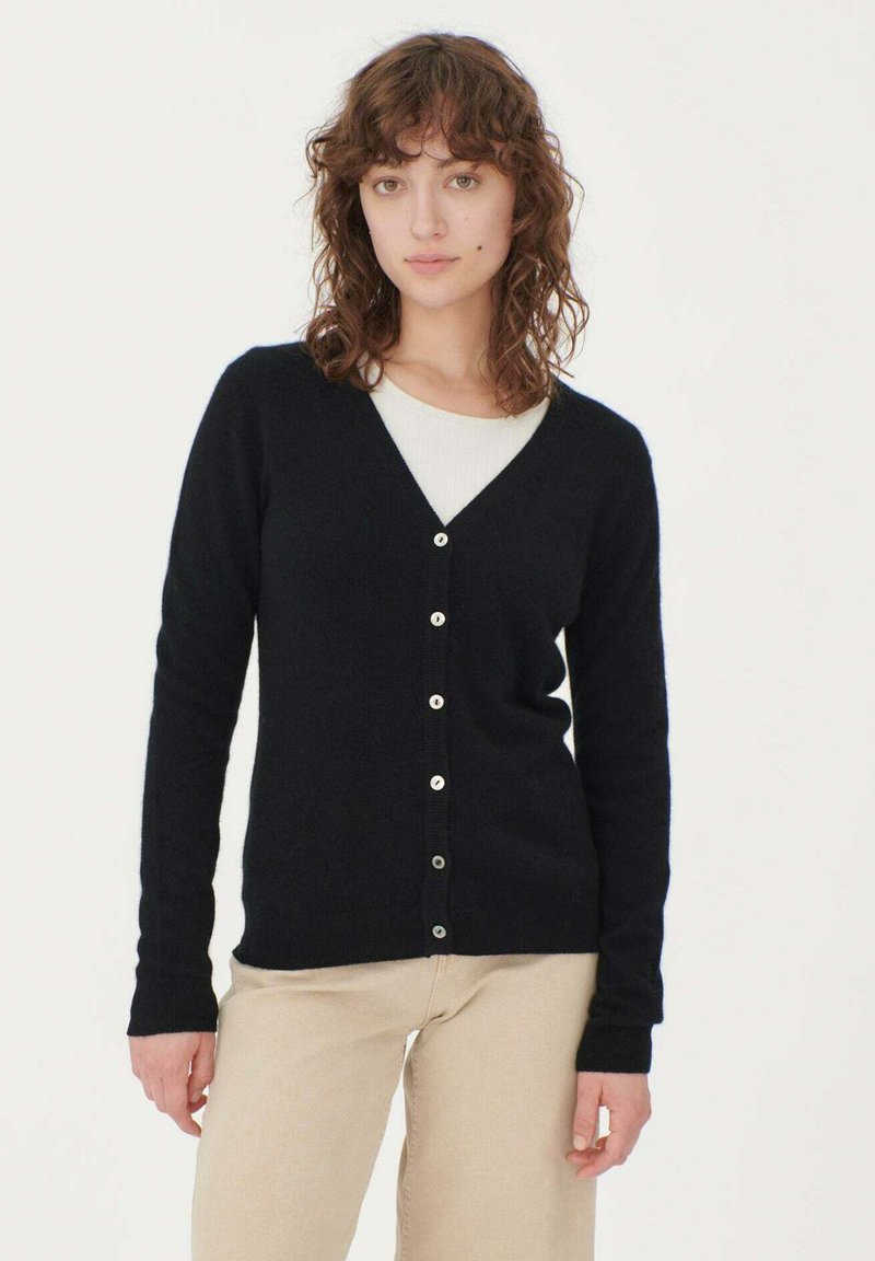 OLIPHEE Strickjacke Damen - Kurzer Cardigan Mit V-Ausschnitt Und Wellenrand