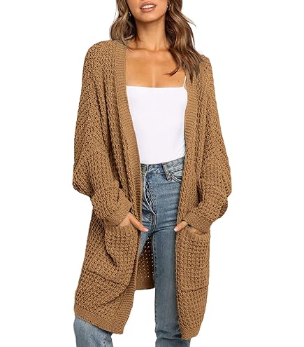 JIAALU Damen Strickjacke Lang - Mit Kapuze Und Taschen Für Herbst/Winter