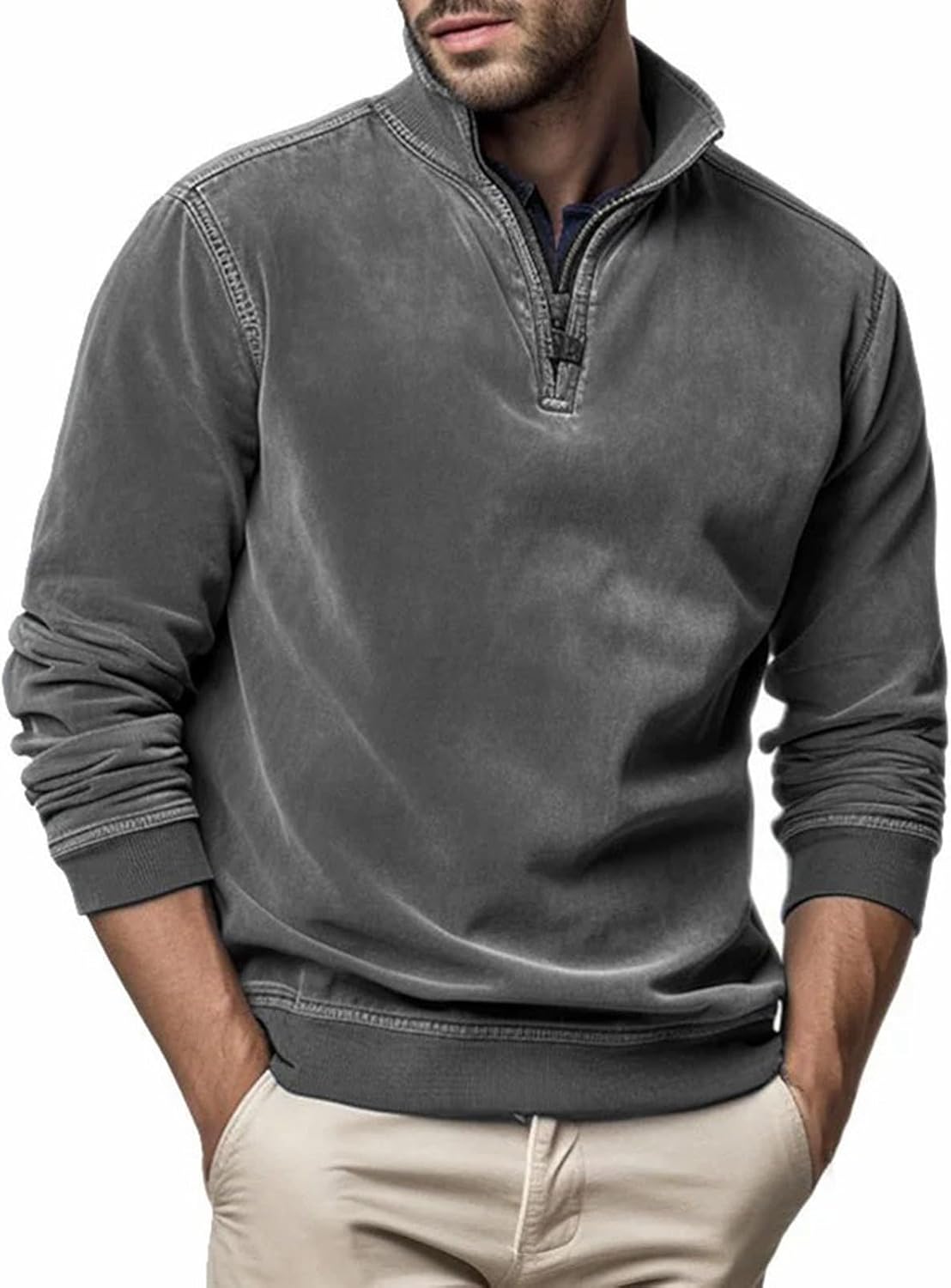 DAFENP Herren Rollkappenpullover - Strickpullover Mit Reißverschluss Für Winter