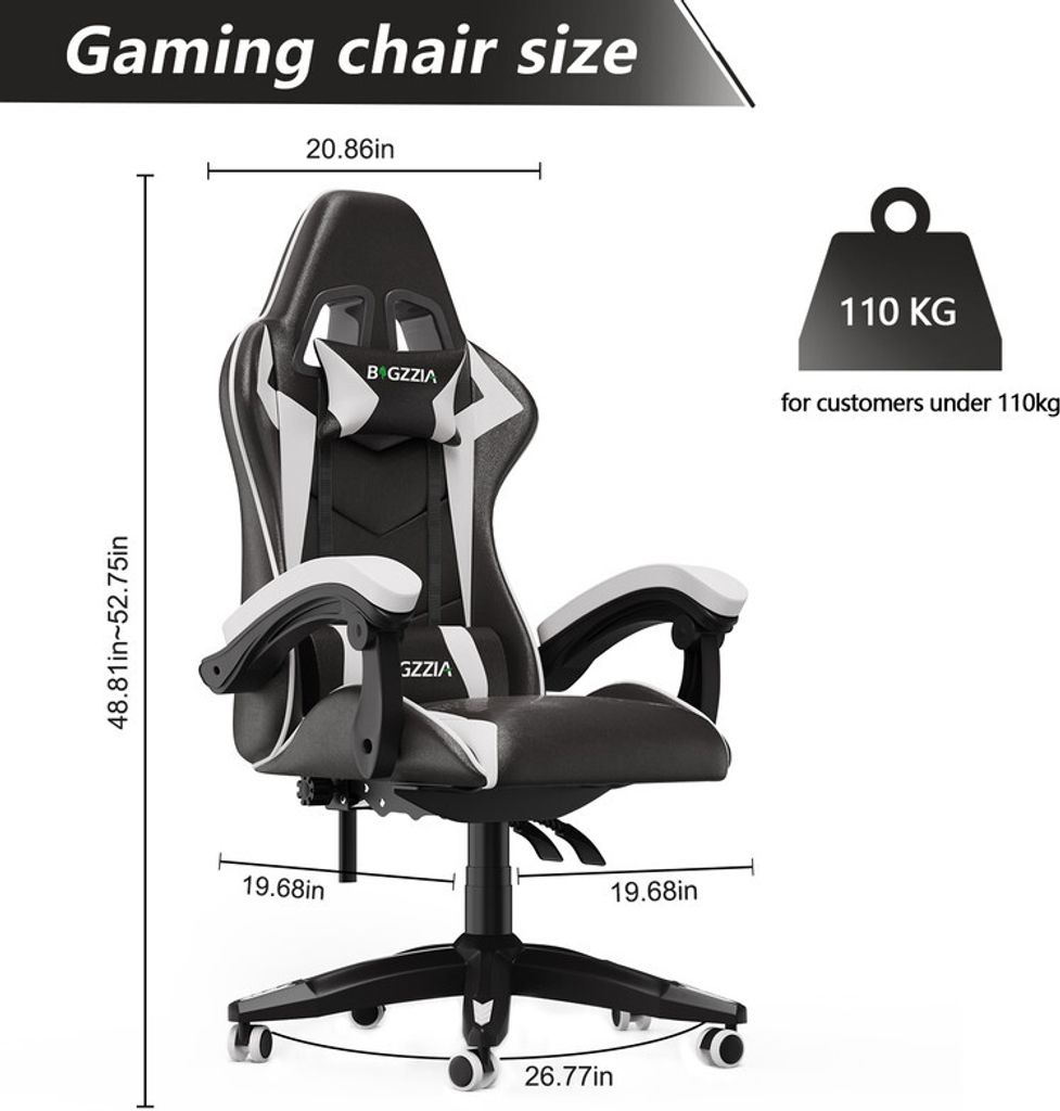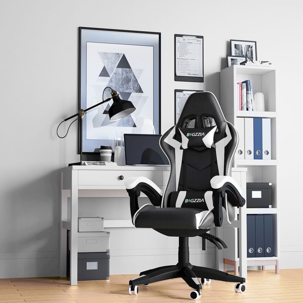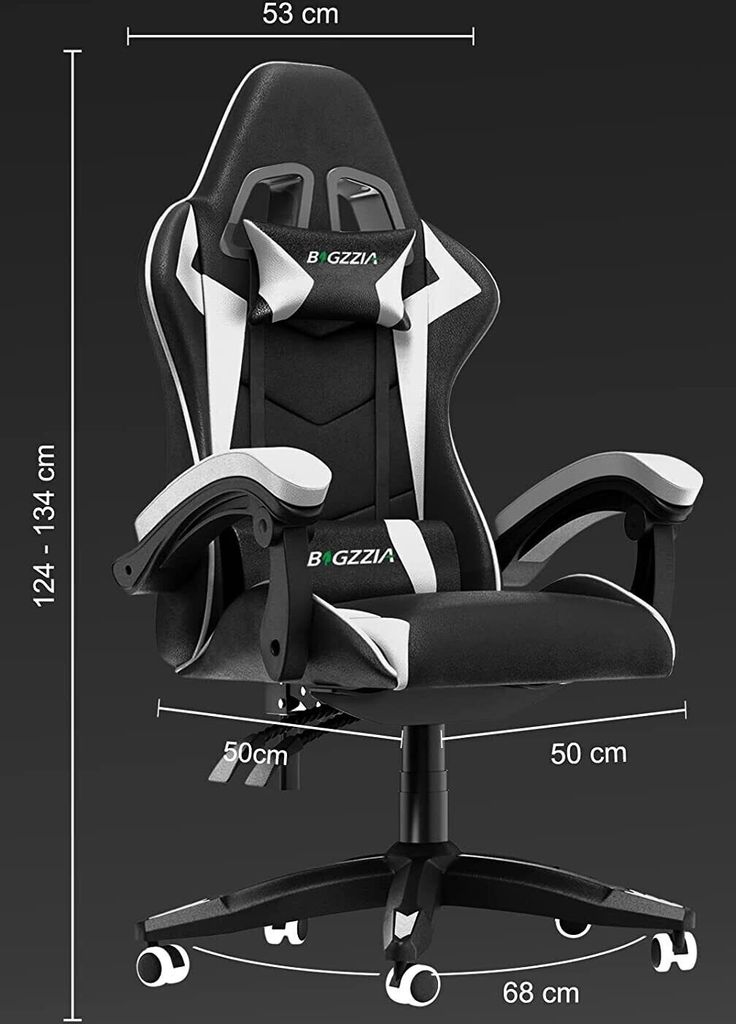 Bigzzia Gaming Stuhl Weiß - Ergonomischer Gamer Stuhl Mit Lendenkissen & Kopfstütze