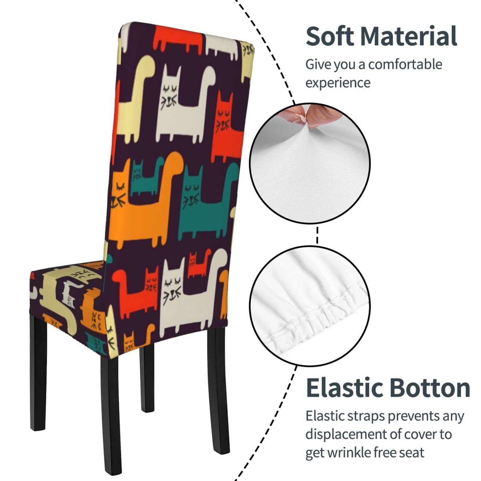 2 Stück Stuhlhussen Mit Katzenmotiv - Dehnbar & Waschbar Für Esszimmerstühle