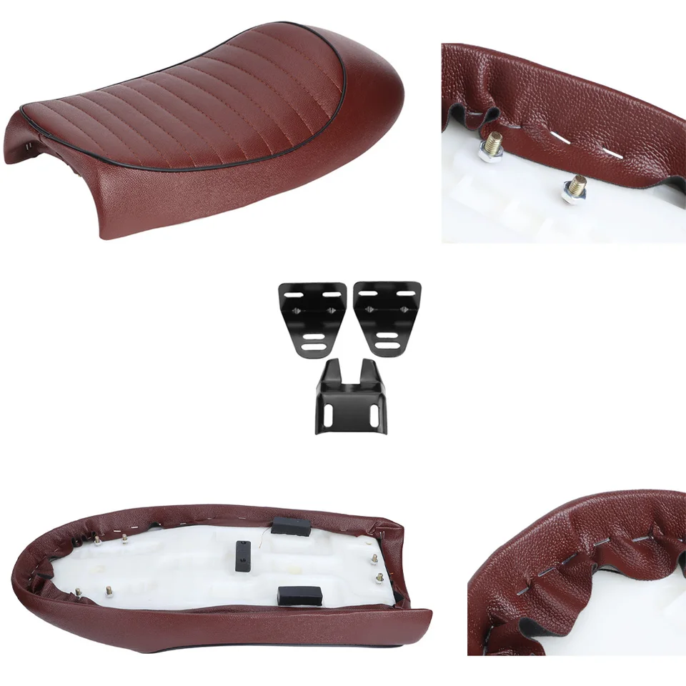 Boah, dieses Motorrad-Sitzpolster bringt richtig Vintage-Flair auf deine Maschine! Aus hochwertigem PU-Leder mit weichem Schwamm innen - super bequem auch bei langen Touren. Die kleine Rauten-Struktur gibt extra Grip, damit du nicht rutschst. Und das Beste: Es ist wasserdicht und leicht zu reinigen. Passt perfekt für CG125, GN, CG, CB200, CB350, CB400SS, CB500, CB750, SR400, SR500, XJ und XS Modelle. Mit vorbereiteten Montagelöchern ist die Installation total einfach. Mach dein Bike zum echten Hingucker - ob für Cafe Racer Look oder einfach nur für mehr Komfort!