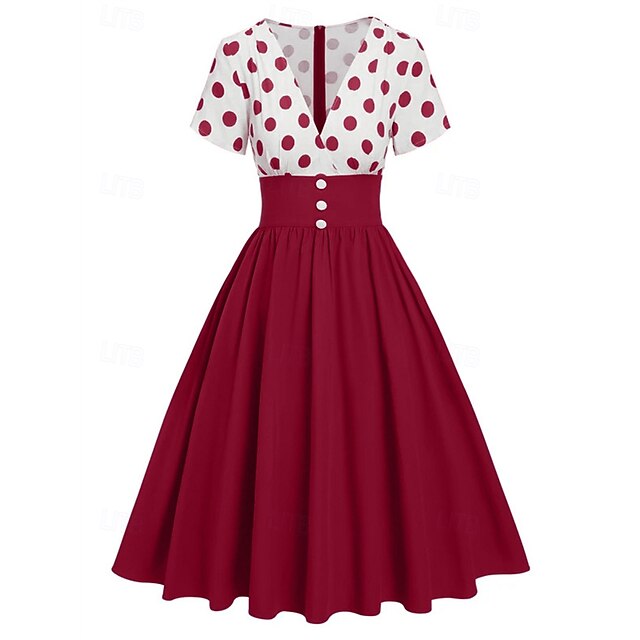 Damen Retro Kleid 1950er Style - Polka Dots Rockabilly A-Linie Mit Gürtel