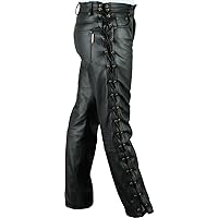 Herren Kunstleder Hose Biker Style - Schnürhose Mit Seitlicher Schnürung