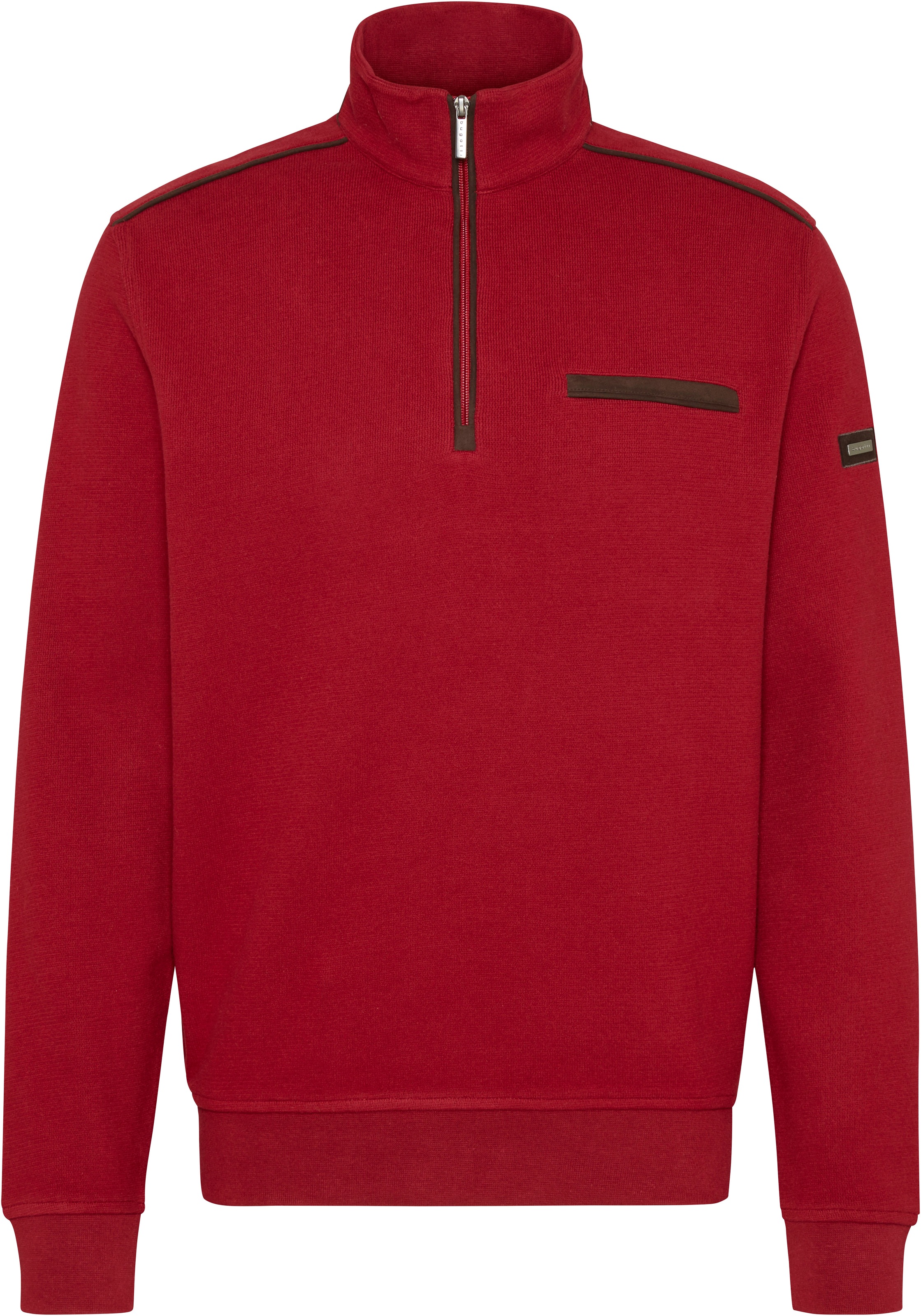 Hey, dieser bugatti Troyer für Herren ist mal richtig was Besonderes! Der Pullover hat so eine coole Struktur und ist mit einer feinen Microma Paspel verziert. Über dem Saumbündchen prangt eine edle bugatti Metallplakette - das sieht einfach klasse aus! Bugatti steht ja für Qualität und das merkst du auch hier. Der Troyer ist perfekt für den Alltag, aber macht auch in der Freizeit was her. Einfach anziehen und du bist bestens angezogen - ob fürs Office oder für einen entspannten Abend mit Freunden. Das Material fühlt sich angenehm auf der Haut an und die Verarbeitung ist, wie man von bugatti gewohnt ist, erstklassig. So ein Teil sollte wirklich in jedem Herrenschrank hängen!