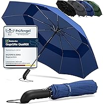 Das Fiberglas-Gestell macht ihn richtig windfest und stabil, während der hochwertige Polyester-Bezug zuverlässig vor Nässe schützt. Der Griff in edler Carbon-Optik liegt super angenehm in der Hand und gibt dir sicheren Halt.