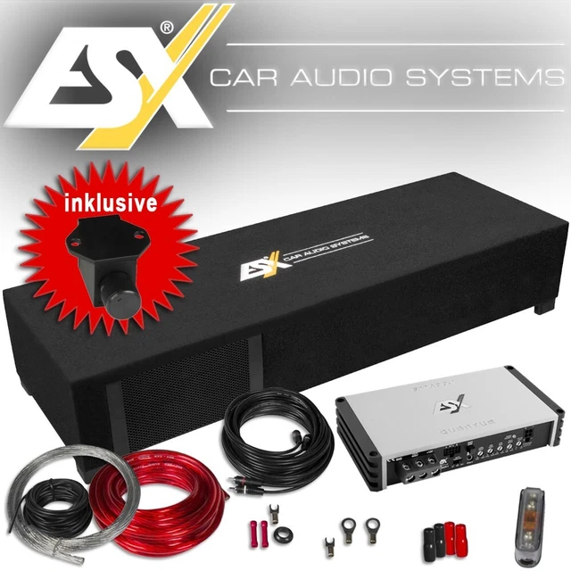 Boom! Dieser ESX DBX600Q Subwoofer bringt den Bass in dein Auto - und das ohne viel Platz zu beanspruchen. Mit zwei 16 cm Subwoofern und 38 mm Schwingspulen liefert er satte 300 Watt RMS (600 Watt max). Das Dual-Bassreflex-System sorgt für tiefe Bässe und dank Quick Connect Anschluss ist die Installation ein Kinderspiel. Besonders cool: Du kannst ihn später mit einem ESX QM Verstärker aktiv machen! Mit 28 x 16,5 x 86 cm passt er auch in kleine Kofferräume oder doppelte Kofferraumböden. Teppichbezug, robuste Bauweise und 2+2 Ohm Impedanz - alles was du für guten Sound brauchst. Ob liegend oder stehend - dieser Subwoofer rockt!