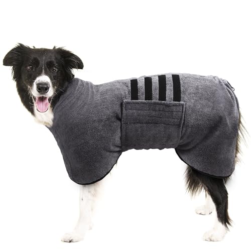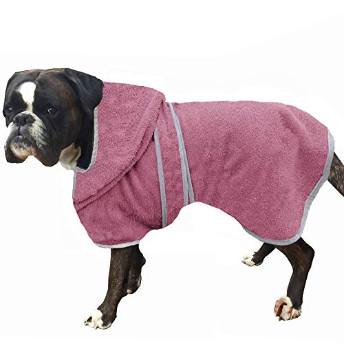 CutitiUU Hundebademantel - Super Saugfähiger Bademantel Mit Kapuze & Bauchgurt Blau