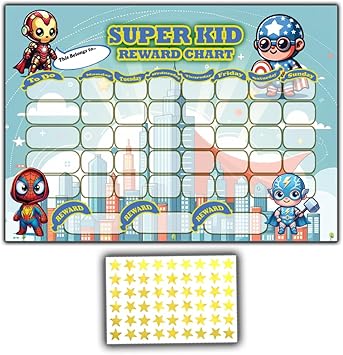 Motivation mit Superhelden-Power! Diese coole Belohnungstafel macht Kindern richtig Spaß am Lernen und bei der Routine. Mit 100 goldenen Sternaufklebern belohnst du positives Verhalten, Hausaufgaben oder Hilfsbereitschaft. Das geschlechtsneutrale Superhelden-Design in lebendigen Farben begeistert Jungen und Mädchen gleichermaßen. A4 Größe passt perfekt an Kühlschrank, Wand oder Kinderzimmertür. Die glänzende Oberfläche ist robust und langlebig. Einfach Sterne für erreichte Ziele vergeben - so lernen Kinder spielerisch Verantwortung. Perfekt für Vorschule, Grundschule oder zu Hause. Mach dein Kind zum Superhelden des Alltags und feiert gemeinsam die Erfolge!