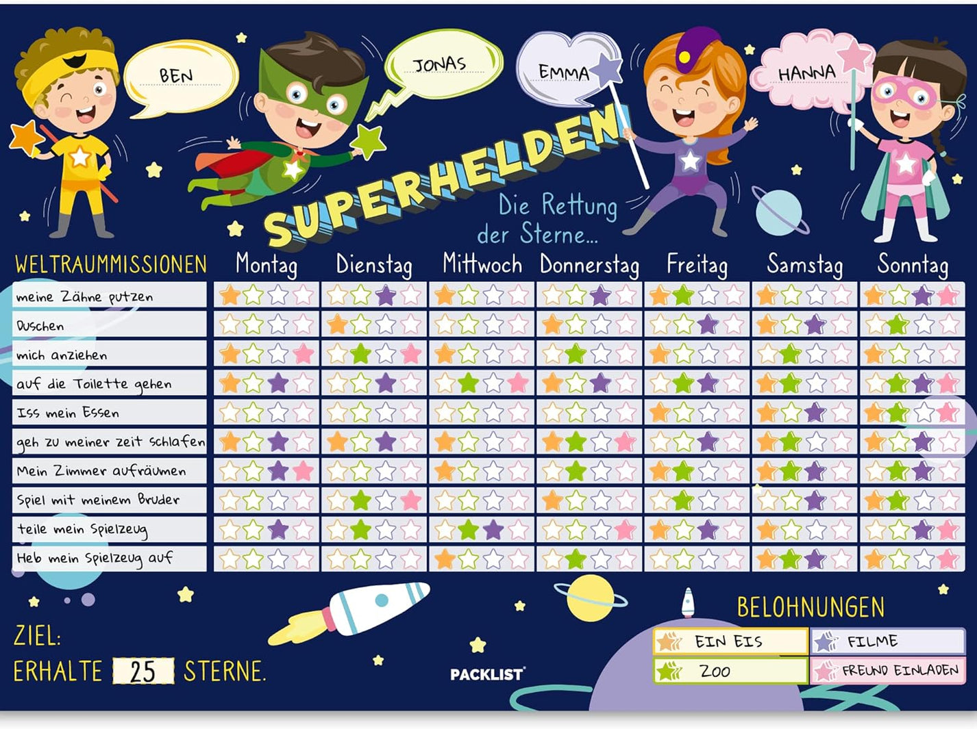 Superhelden Belohnungstafel Für Kinder - Mit 100 Goldenen Sternaufklebern A4