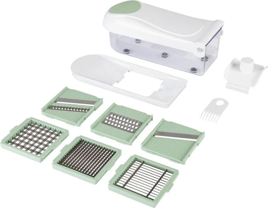 Küchenzauber leicht gemacht! Dieser 18-in-1 Gemüseschneider von Swetfela ist dein neuer bester Freund in der Küche. Mit 7 scharfen Edelstahl-Klingen für alle Schneidewünsche - ob Julienne, Scheiben oder Würfel. Im Set enthalten: Schäler, Eiertrenner, Reinigungsbürste, Schutzhandschuh und mehr! Der Abtropfkorb filtert überschüssiges Wasser ab - clever! Super sicher mit Handschuh und Handschutz - keine geschnittenen Finger mehr! Einfach zu reinigen, alle Teile sind zerlegbar. Perfekt für Kartoffeln, Karotten, Zwiebeln und so ziemlich jedes andere Gemüse. Spart dir jede Menge Zeit beim Kochen - schnippeln war noch nie so einfach! Aus lebensmittelechten Materialien, rutschfester Griff. Deine Küchen-Revolution wartet!