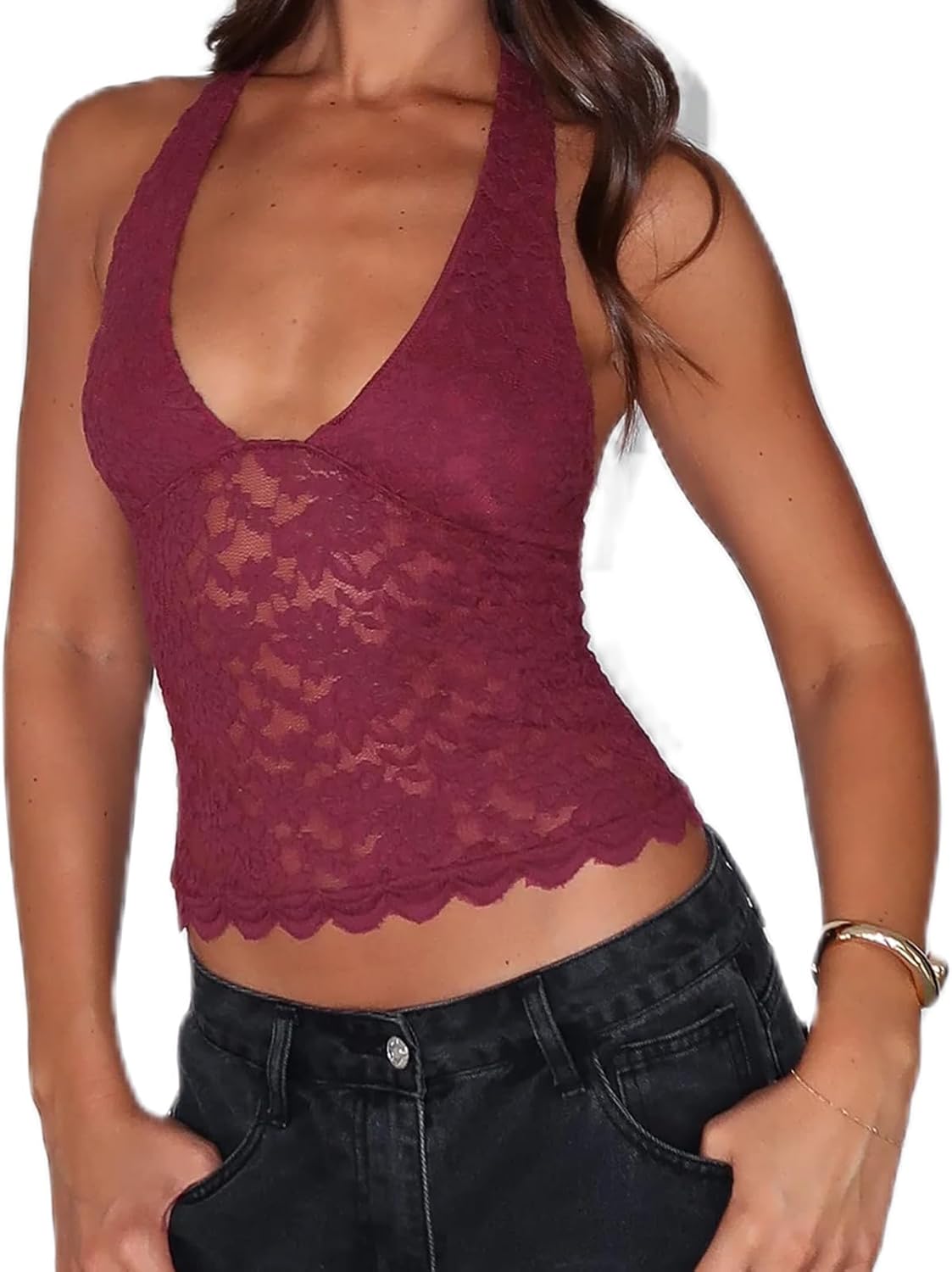 Total angesagtes Y2K-Top für den Sommer! Dieses bauchfreie T-Shirt mit floralem Spitzenmuster ist genau der richtige Look für heiße Tage. Mit tiefem V-Ausschnitt, Flügelärmeln und sexy rückenfrei Design. Aus 95% Polyester und 5% Elasthan - leicht, dehnbar und atmungsaktiv. Perfekt für Parties, Strand, Festival oder einfach für den Alltag. Kombinierbar mit Jeans, Shorts oder Röcken. In Größen S, M, L erhältlich. Weicher Stoff, der sich angenehm auf der Haut anfühlt. Mach dich bereit für Komplimente - dieses Top wird dir sicher gefallen!