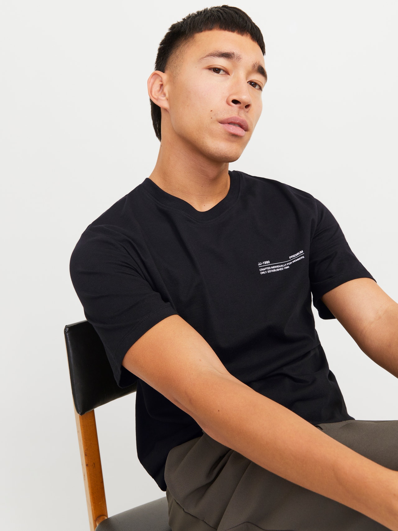 Ein klassisches T-Shirt von JACK & JONES - was will man mehr? Dieses Basic-Shirt aus weicher Baumwolle sitzt perfekt und ist dein neuer Lieblingsbegleiter für jeden Tag. Mit coolem Aufdruck der dänischen Marke, die für lässigen Skandinavien-Style bekannt ist. Ob unter der Jacke, zur Jeans oder einfach so - dieses Shirt passt immer. Die Qualität stimmt, das Design ist zeitlos und der Tragekomfort einfach top. Perfekt für Arbeit, Freizeit oder abends mit Freunden. JACK & JONES steht für urbanen Streetstyle mit nordischem Flair. Hol dir dieses Allround-Talent für deinen Kleiderschrank - du wirst es lieben!