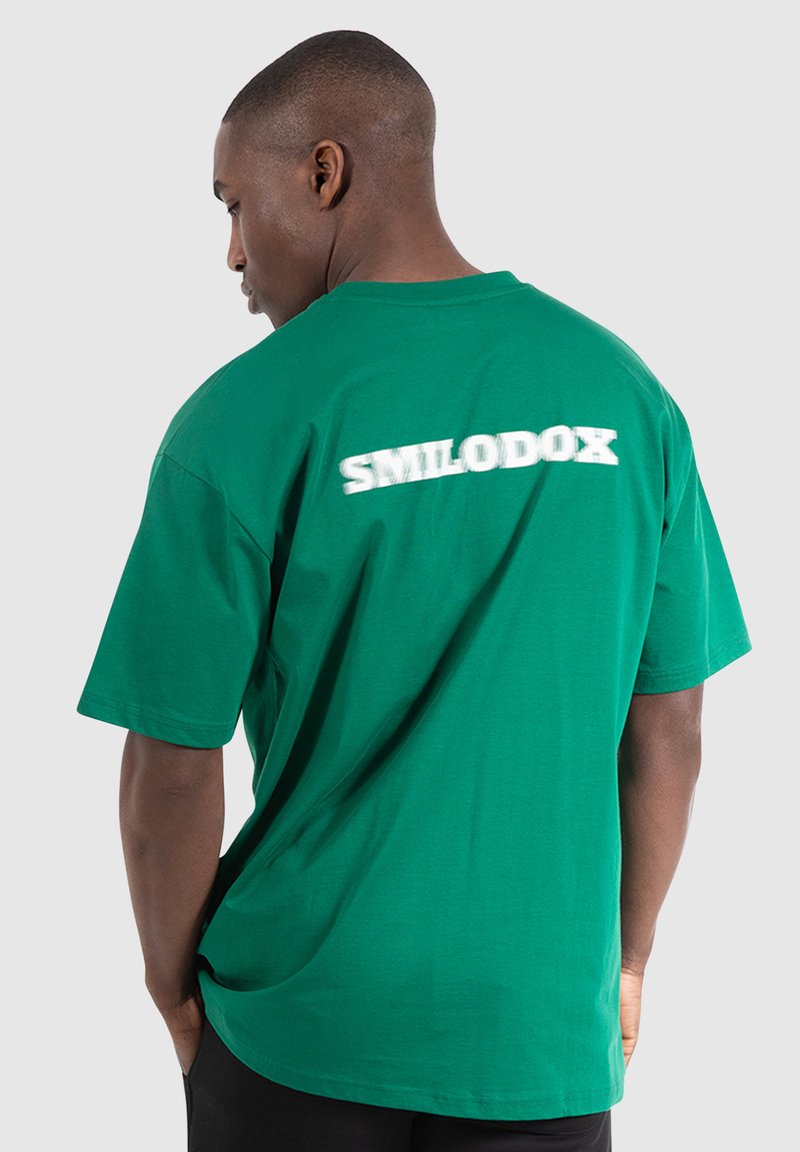 SMILODOX Oversized T-Shirt Herren Mit Globus-Print - Lässiges Streetwear Shirt Für Den Alltag