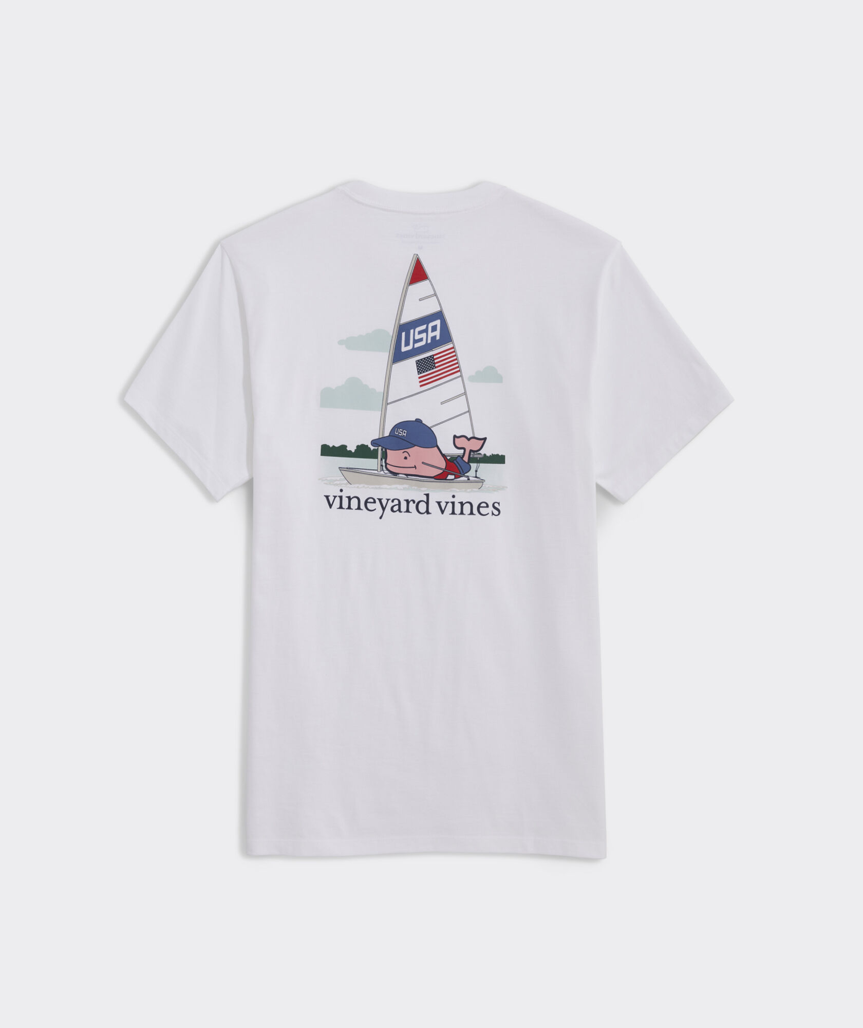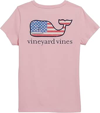 Vineyard Vines Damen T-Shirt New Flag Whale - Kurzarm Mit Brusttasche & Wal-Motiv