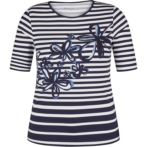 Dieses Rabe-T-Shirt ist einfach stylisch! Der klassische Ringel-Look kombiniert mit einem coolen Frontprint und dezenten Glanzdetails. Die 3/4-Ärmel sind perfekt für den Übergang, und die weiche Jersey-Qualität (95% Baumwolle, 5% Elasthan) trägt sich super bequem. Ob zu Jeans, Rock oder Leggings - dieses Shirt passt immer. Der Rundhalsausschnitt sitzt angenehm, und die bequeme Passform macht es zum perfekten Alltagsbegleiter. Einfach anziehen und gut aussehen!