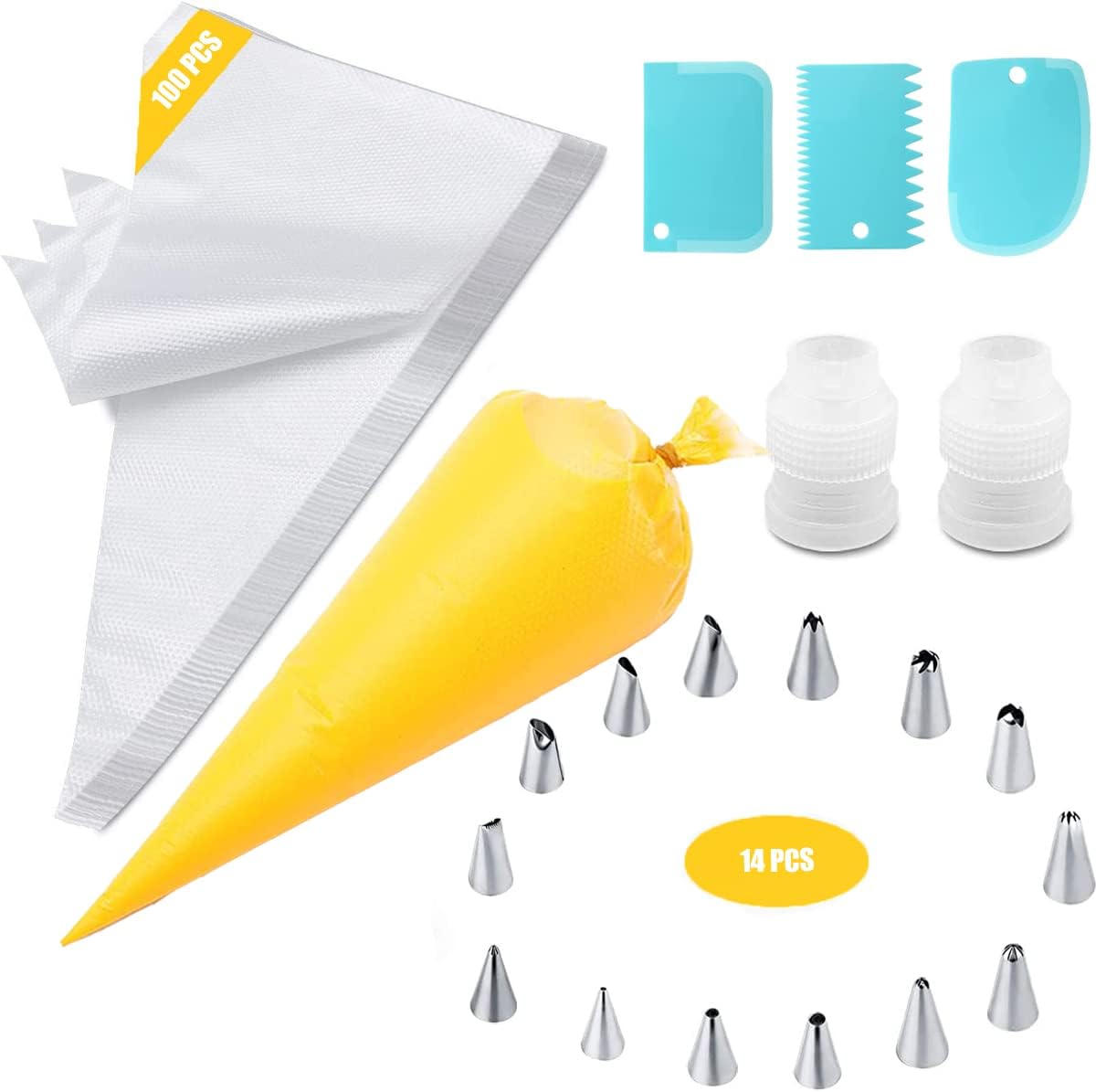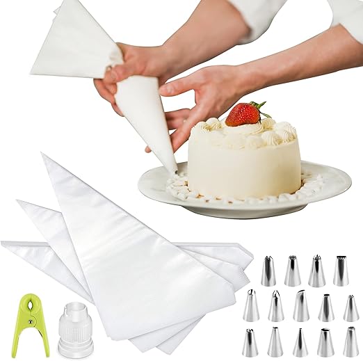 Profidekoration für deine Torten! Dieses riesige Set enthält 100 Einweg-Spritzbeutel, 16 Edelstahl-Tüllen, 2 Adapter, 2 Verschlüsse und 3 Schaber. Alles BPA-frei und lebensmittelecht. Erstelle Blumen, Muster und Schriftzüge wie ein Konditor. Die Beutel sind rutschfest und geben dir volle Kontrolle. Perfekt für Geburtstage, Hochzeiten oder einfach zum Spaß backen. Vom Anfänger zum Profi - mit diesem Set gelingen dir kunstvolle Kreationen!
