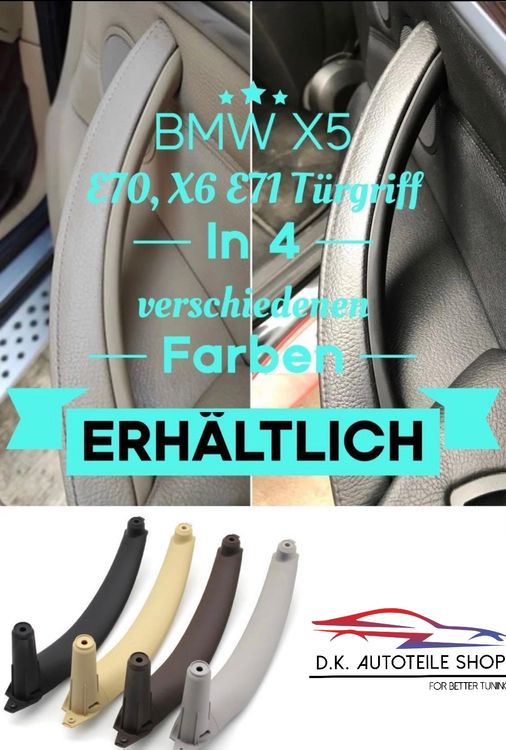 Deine BMW Türgriffe sehen mitgenommen aus? Diese Abdeckung macht sie wieder wie neu! Speziell für BMW X5 E70 (2006-2013) und X6 E71/E72 (2008-2014) - rechtsseitig für Linkslenker. Aus hochwertigem ABS-Material, langlebig und in Schwarz, Beige oder Carbon-Design erhältlich. Das beste: Einfach draufsnappen - kein Werkzeug nötig! Deckt abgenutzte, klebrige oder verkratzte Griffe perfekt ab und gibt dem Innenraum sofort ein aufgewertetes Look. Passt perfekt zu xDrive30i, xDrive48i, xDrive50i und vielen anderen Modellen. Einfach den alten Griff nicht mehr ansehen müssen - diese Abdeckung verleiht deinem BMW sofort mehr Wertigkeit. Und das beste: Sie unterscheidet nicht zwischen vorderen und hinteren Türen - einfach überziehen und fertig! Perfekt für alle BMW-Fans, die ihr Fahrzeug innen wie neu aussehen lassen wollen.