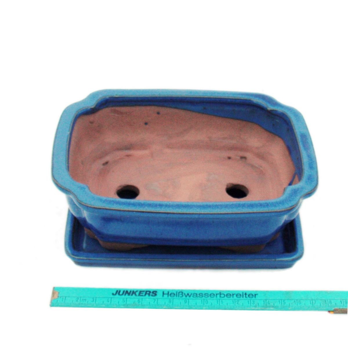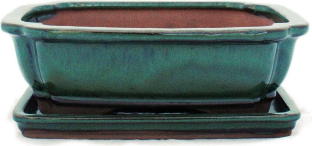 Bonsai-Schale Rechteckig Türkis GB5 - 17x13x7,5cm Mit Unterteller - Yixing Keramik Made In China
