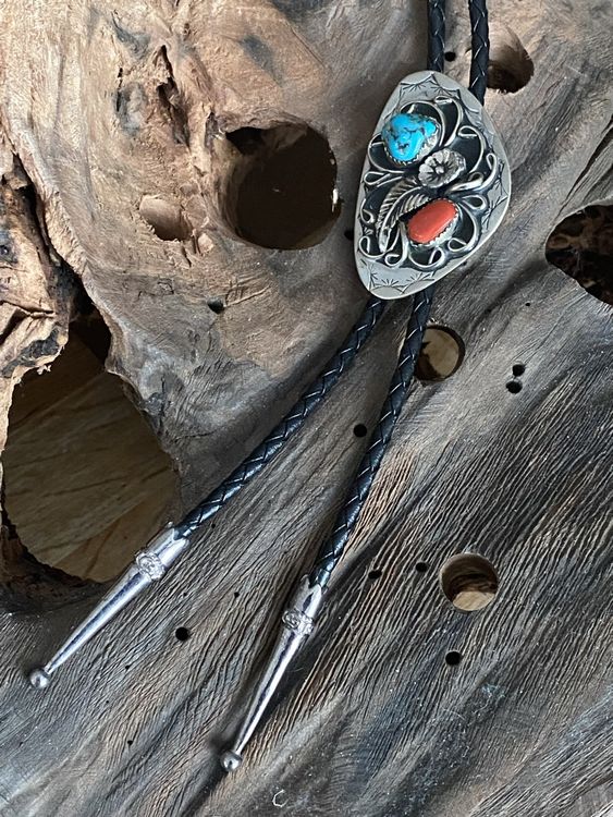 Bolo Krawatte Leder – Western Style Halskette | Türkis Indianer Motiv | 2 Stück Für Herren & Damen