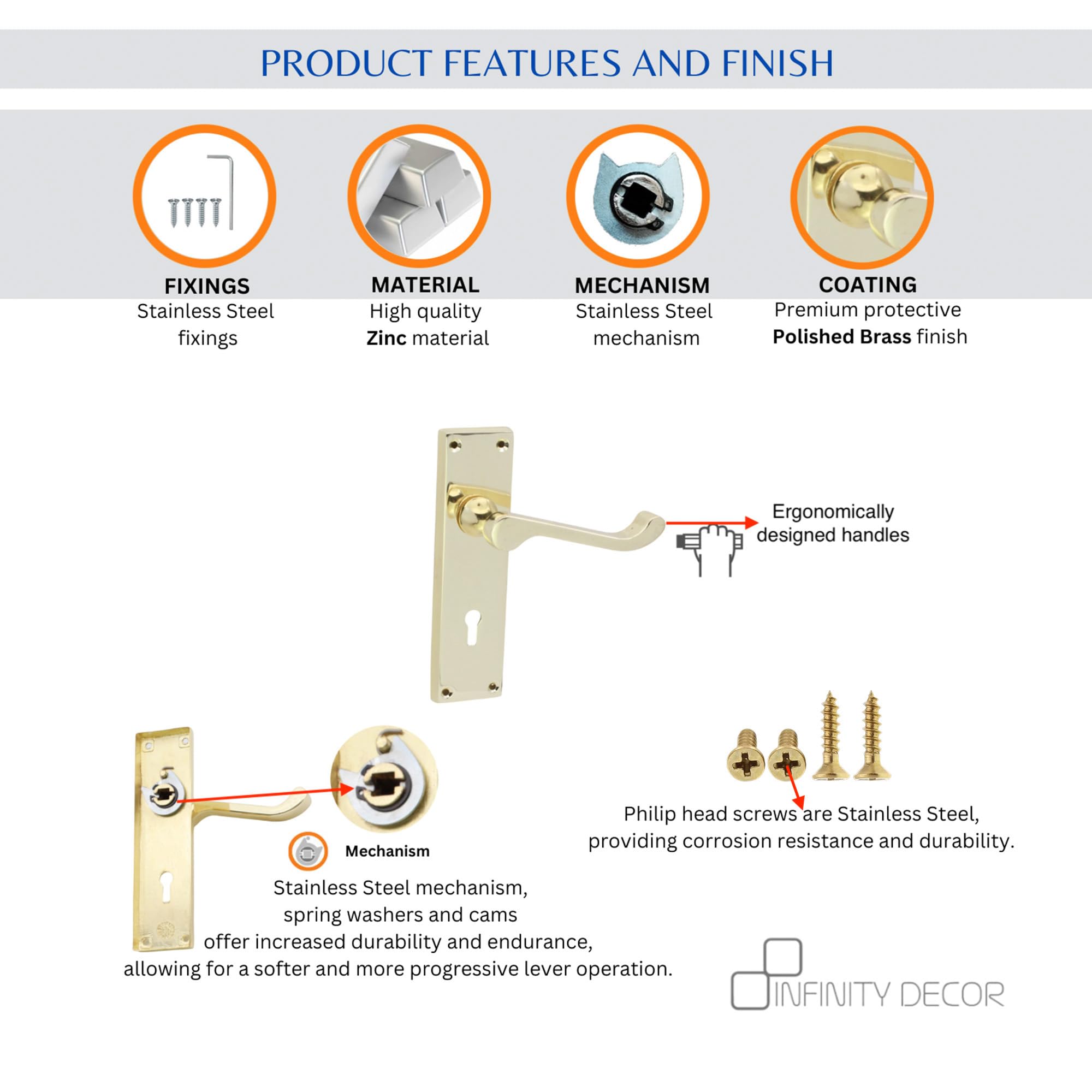 Die Installation ist denkbar einfach: Alle notwendigen Befestigungsschrauben sind im Lieferumfang enthalten. Passt auf Holz-, Metall- und uPVC-Türen. Einfach die Löcher mit 90 mm Abstand bohren, Klopfer montieren und schon verleiht er deinem Eingang das gewisse Etwas!
