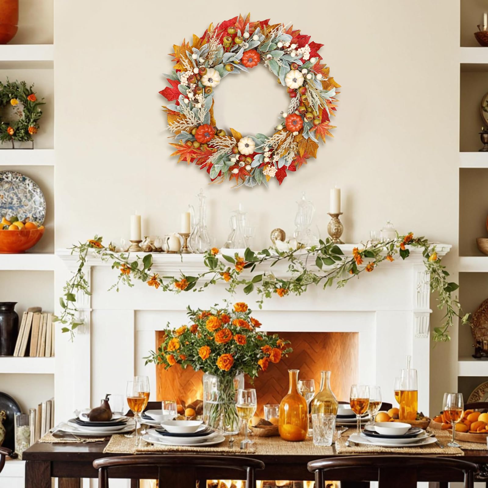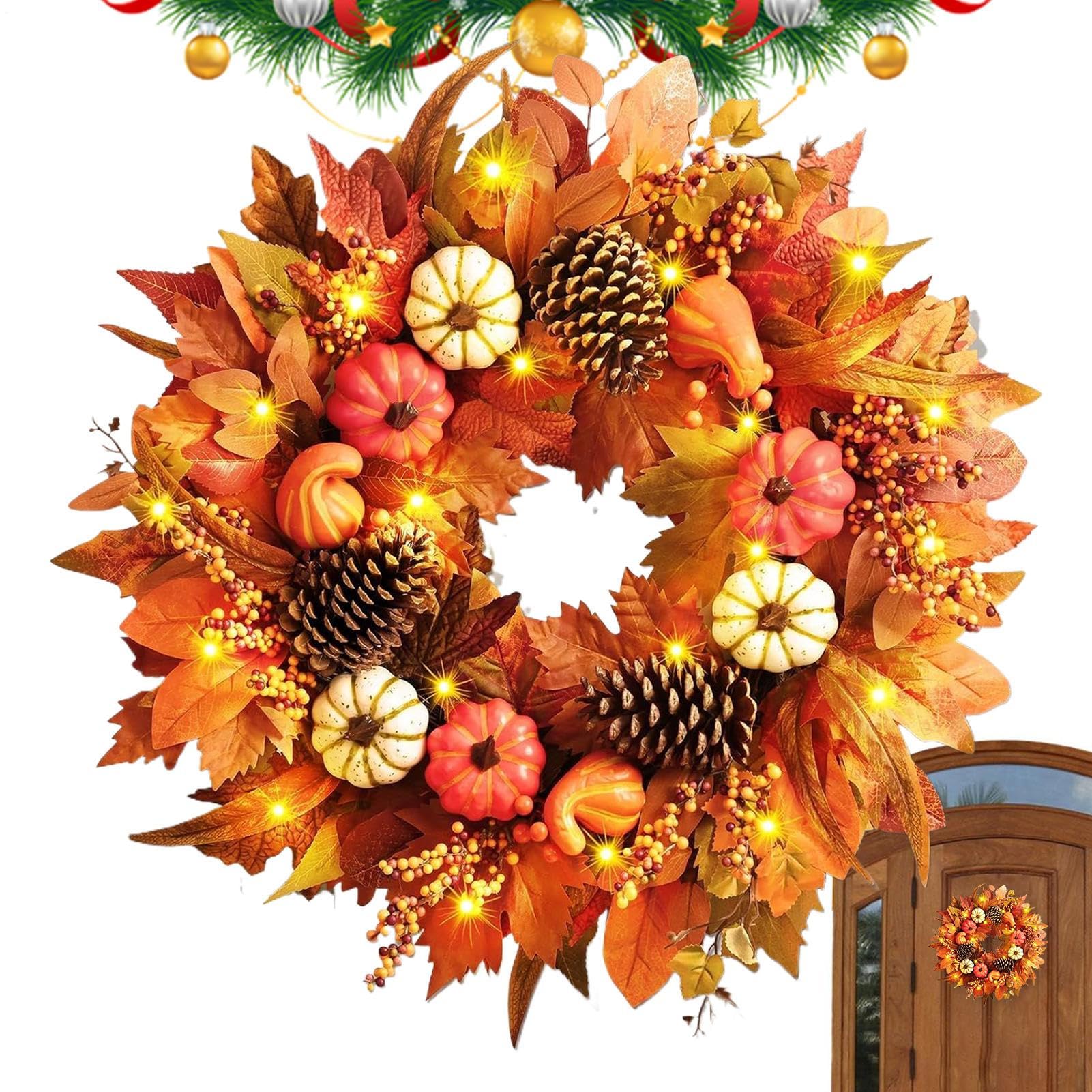 Weldomcor Herbstkranz - Großer Türkranz Mit Ahornblättern & Beeren