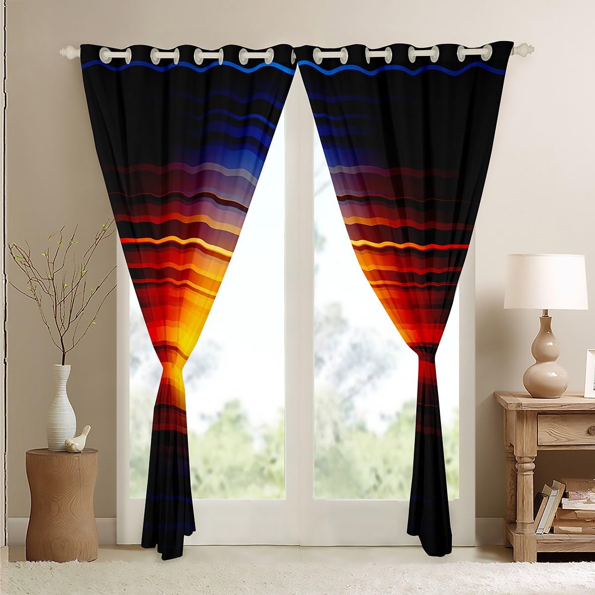 Bring Farbe in dein Zuhause! Dieser coole Türvorhang mit geometrischem Muster in Orange und Schwarz ist perfekt für Kinderzimmer, Teenager-Zimmer oder Büros. Mit 106x203 cm passt er super in die meisten Türrahmen. Der 3D-Druck sieht mega modern aus und schützt deine Privatsphäre, ohne den Raum komplett abzudunkeln. Blockiert etwa 30-50% des Lichts - je nachdem wie hell es draußen ist. Einfach aufzuhängen - die Plastiktüllen oben passen auf die meisten Vorhangstangen (die Stange ist allerdings nicht dabei!). Super für Türen, aber auch als Raumteiler oder Fenstervorhang geeignet. Schützt Möbel und Boden vor starker Sonneneinstrahlung. Macht aus jedem langweiligen Raum sofort einen stylischen Ort! Perfektes Geschenk für Geburtstage, Einzug oder einfach so. Der Druck ist hochauflösend und waschbar - bleibt also lange schön. Verleiht deinem Zuhause diesen modernen, jugendlichen Look, den einfach jeder liebt!